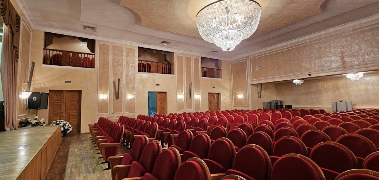 Планировка помещений отличалась чёткой пропорциональностью, простотой и удобством сообщения. Из всех помещений здания наиболее парадным был интерьер зала собраний в первом этаже. В северной части зала была организована эстрада, в южной — кинобудка. Вдоль западной стены вторым ярусом располагались балконы для зрителей.