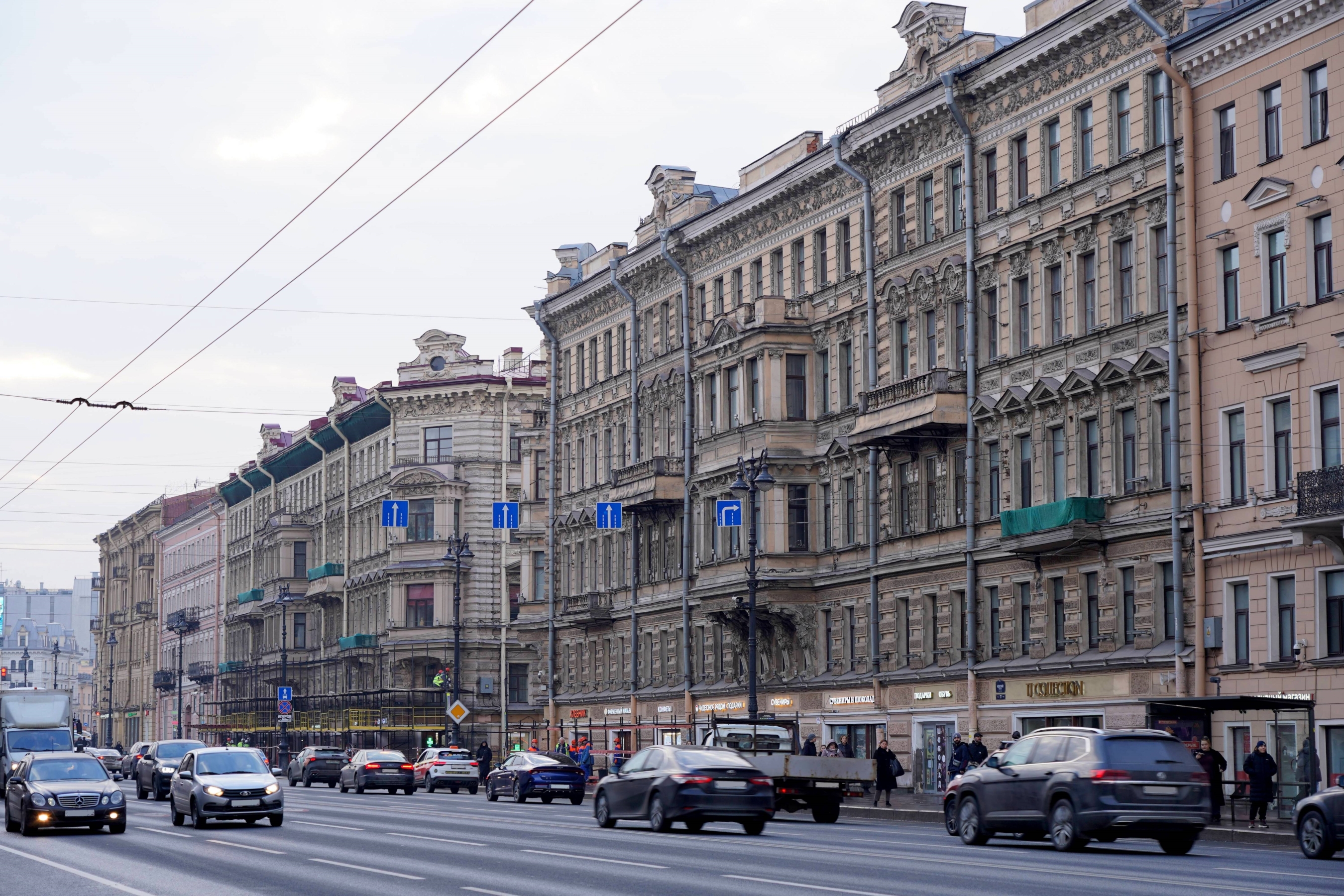Реставрация фасадов зданий на Невском проспекте проводится по поручению Губернатора Санкт‑Петербурга А. Д. Беглова и входит в один из десяти приоритетных проектов Санкт‑Петербурга.