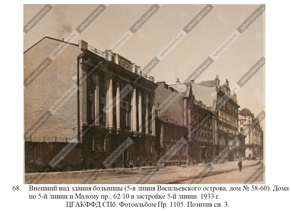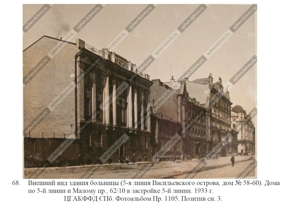 Каменные строения располагались на этом участке уже во второй половине XVIII века. В Атласе 1798 года здесь обозначены угловой жилой дом по 5-й линии и Малому проспекту, а также жилой дом вдоль красной линии Малого проспекта.