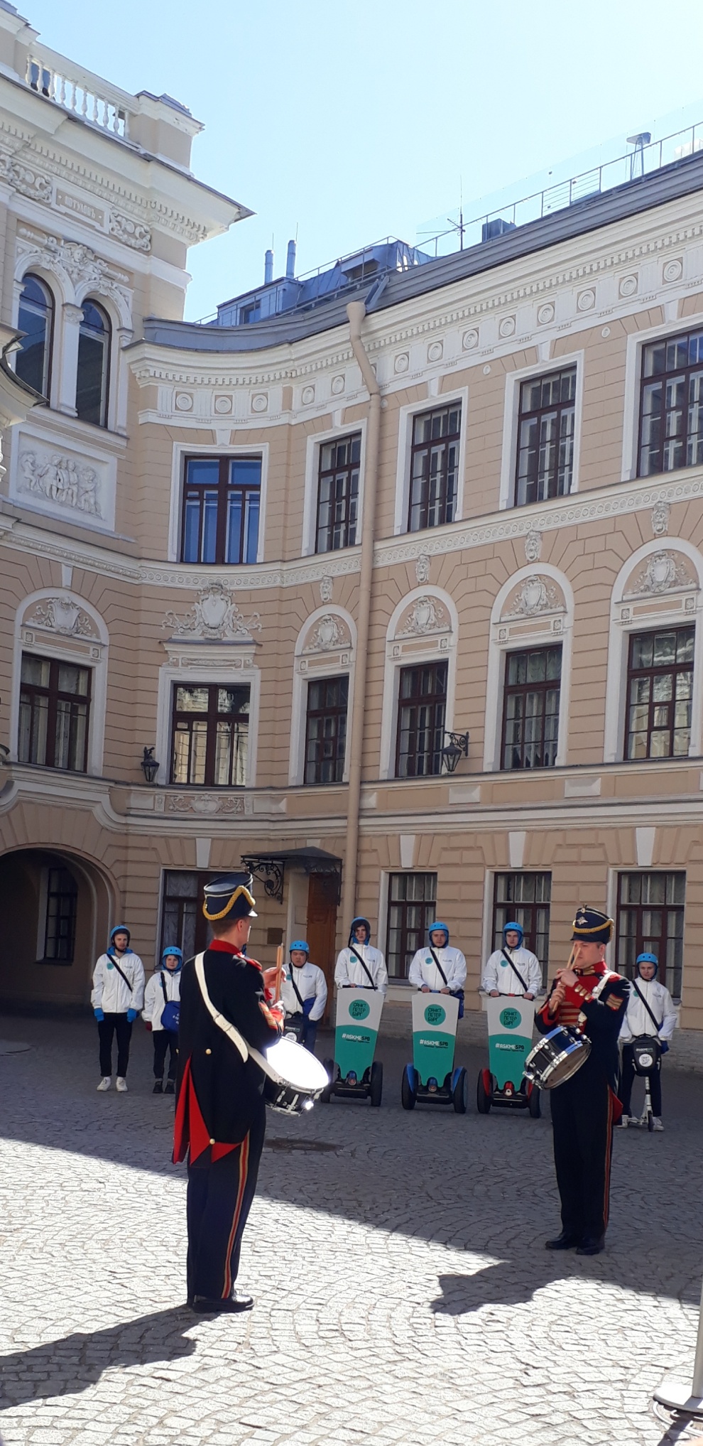 После первого выступления исполнители вышли в парадный двор Капеллы сделать несколько снимков с гостями церемонии открытия летнего туристского сезона 2022 года.