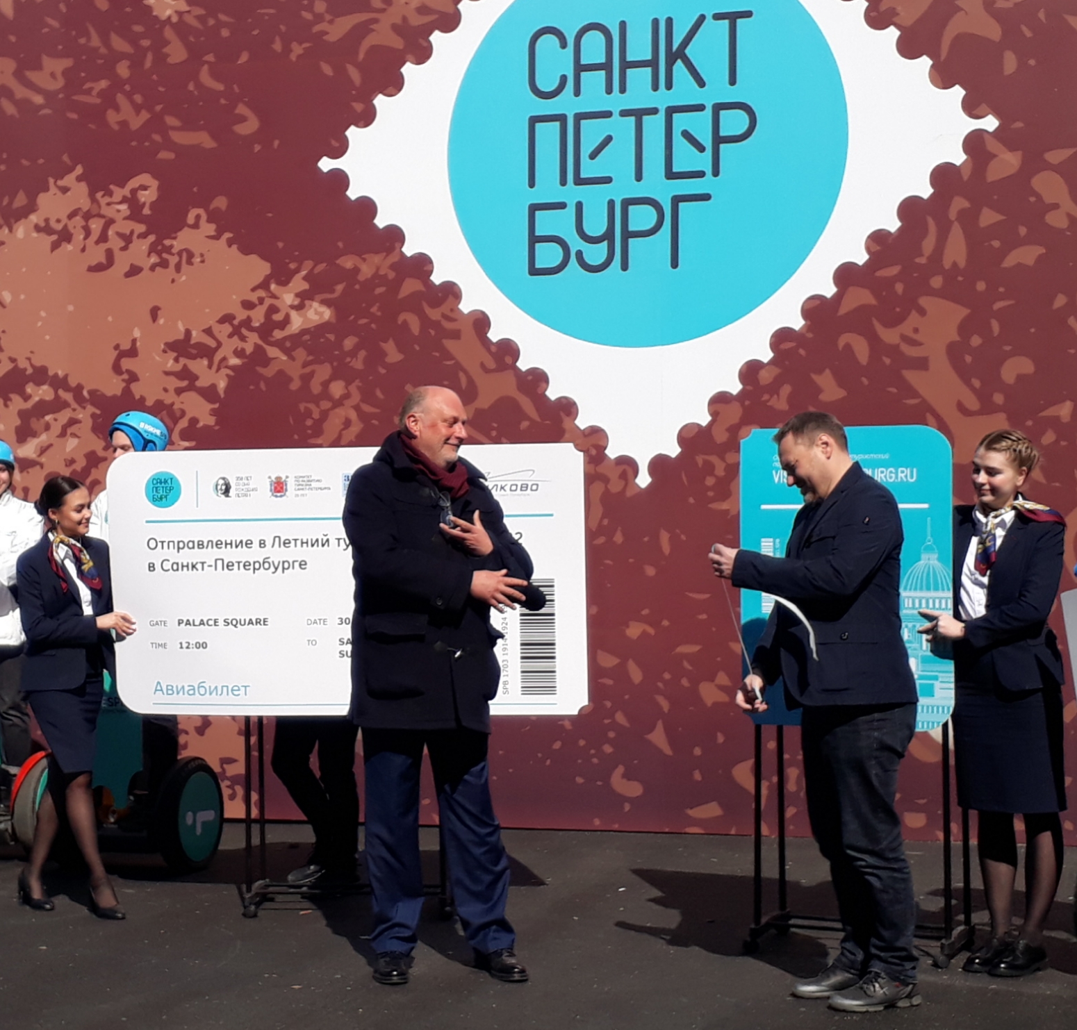 Участники церемонии разорвали символический огромный посадочный талон и дали старт работе большого мультимедийного павильона «Туристский чемодан». Разработанный для павильона контент будет далее использоваться в маркетинговых мероприятиях по продвижению туристских возможностей города.