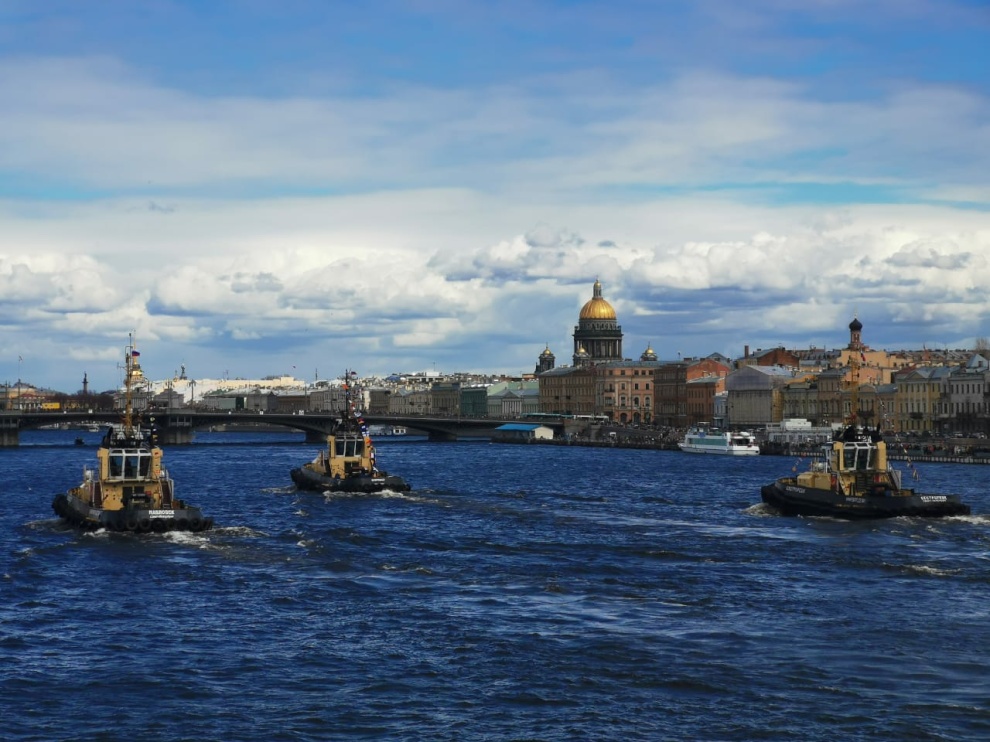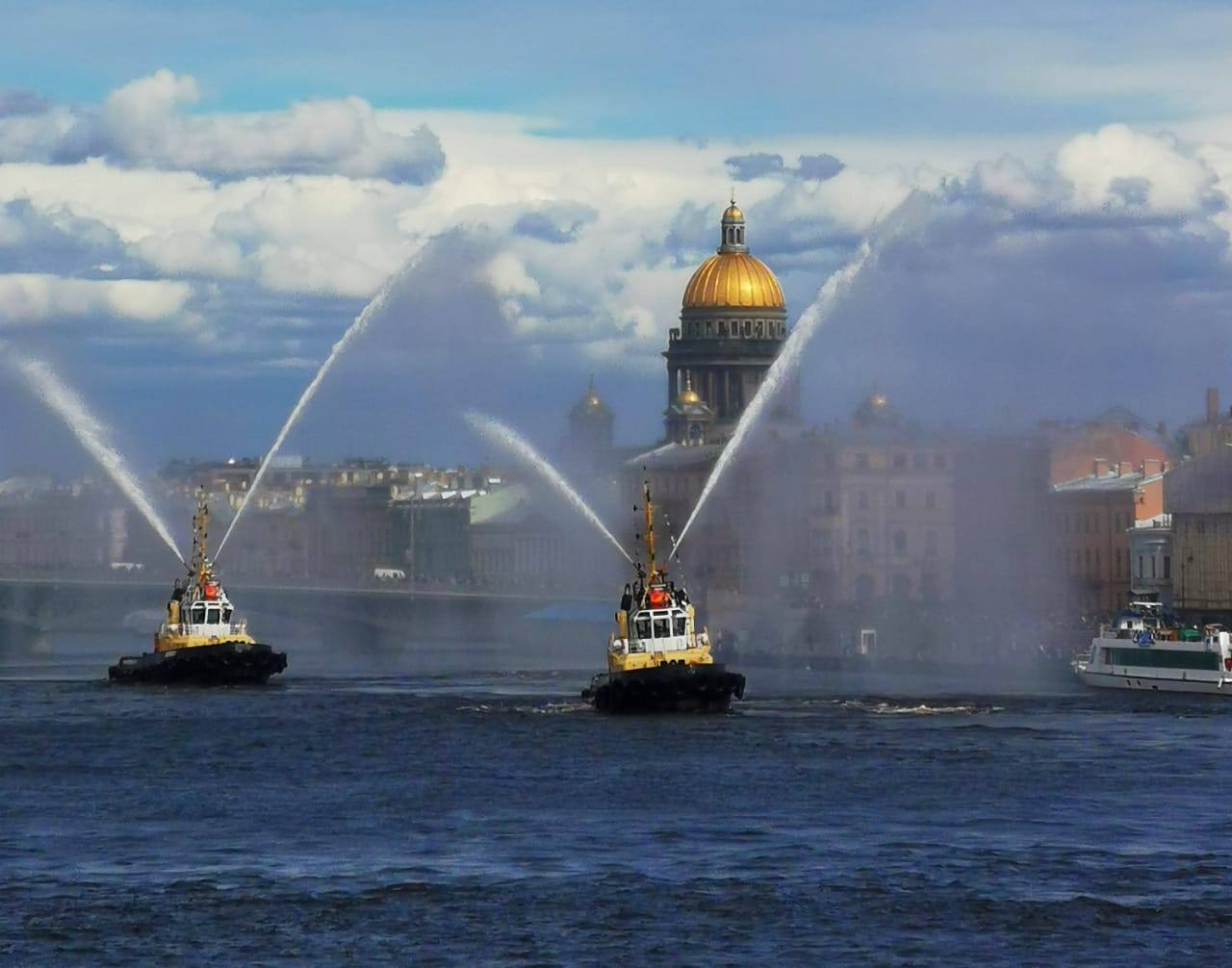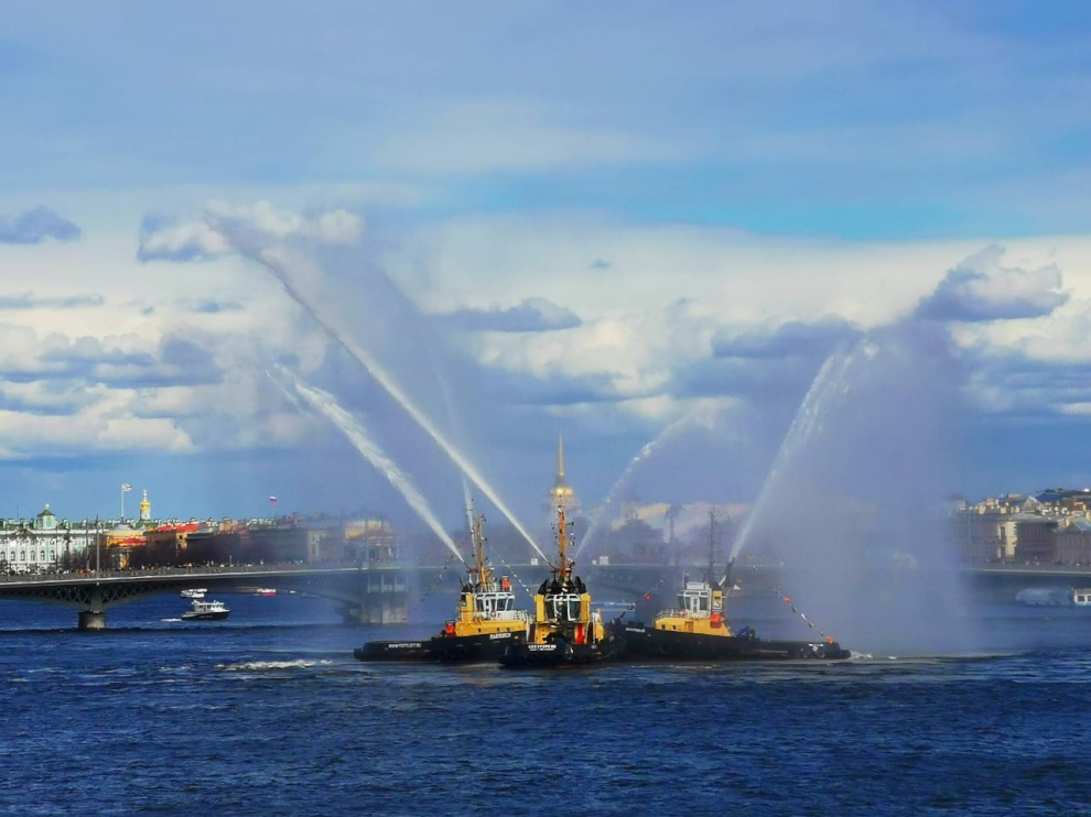 Кульминацией фестиваля стал парад водной техники. Настоящим украшением фестиваля стал Вальс буксиров. В сопровождении симфонического оркестра буксиры исполнили морской вальс, создав фееричное шоу на воде. Три буксира синхронно кружились под знаменитые мелодии, то расходясь, то вновь собираясь вместе, выпуская мощные водяные фонтаны. У буксирного флота работа есть всегда, даже ночью и в праздники эти трудяги на вахте. Тем не менее, капитаны судов перед выступлением провели несколько репетиций на импровизированной сцене – у Благовещенского моста, где течение Невы довольно сильное, и судоводительское мастерство чрезвычайно важно. Представители современного буксирного флота продемонстрировали всё – и манёвренность, и скорость выполнения элементов, и слаженность действий, приведя в восторг зрителей.