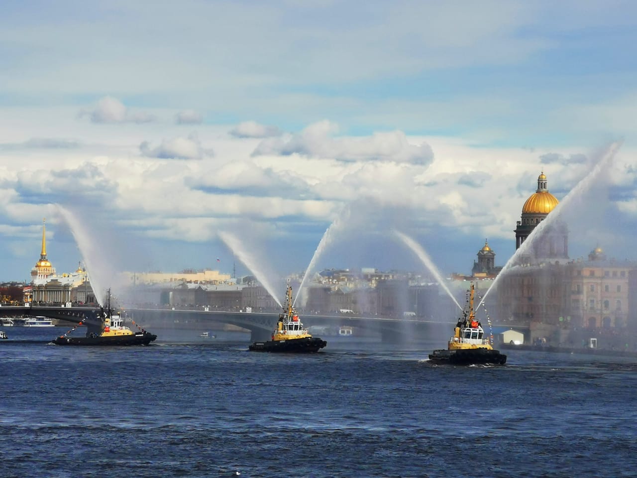 Петербуржцы могли любоваться и торжественным парадом «Метеоров» – кораблей на подводных крыльях. Судоходные компании «Астра Марин», «Водоход» и «Нева Тревел» предоставили свои суда для праздничного прохода «Метеоров» из акватории Невы в Финский залив.