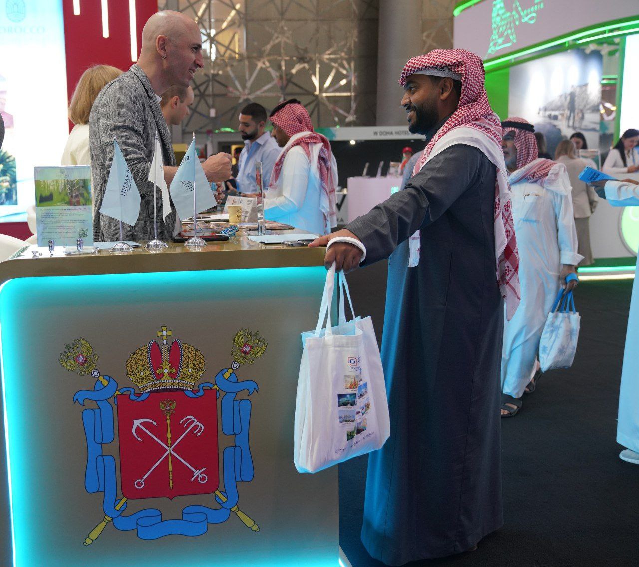 Почетным гостем стенда города на Неве стал шейх Файсал бин Тани Аль Тани, министр торговли и промышленности Катара. Его встретили посол РФ в Катаре Дмитрий Догадкин, заместитель председателя Комитета по развитию туризма Санкт‑Петербурга Нана Гвичия, генеральный директор Конгрессно-выставочного бюро Санкт‑Петербурга Сергей Азаренков, представители крупнейших туроператоров и отелей Северной столицы.
