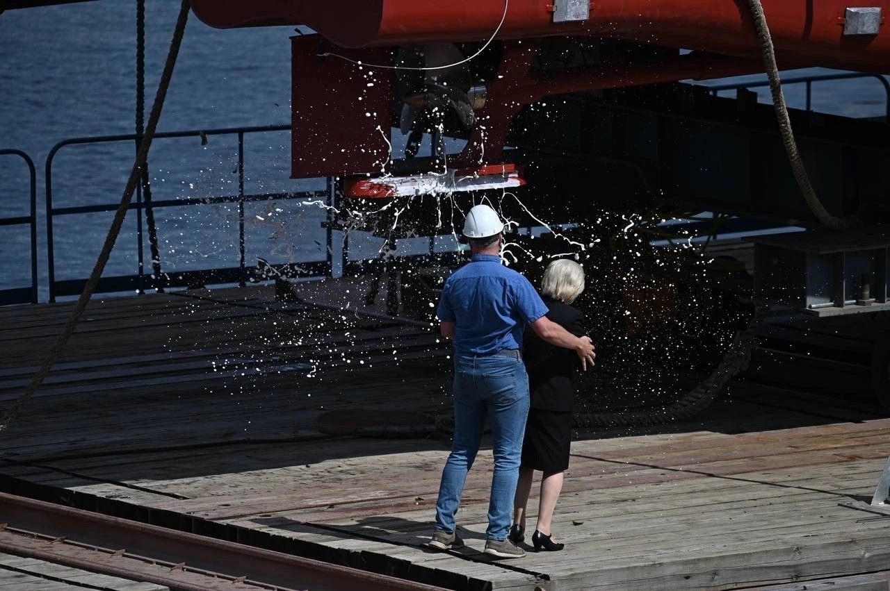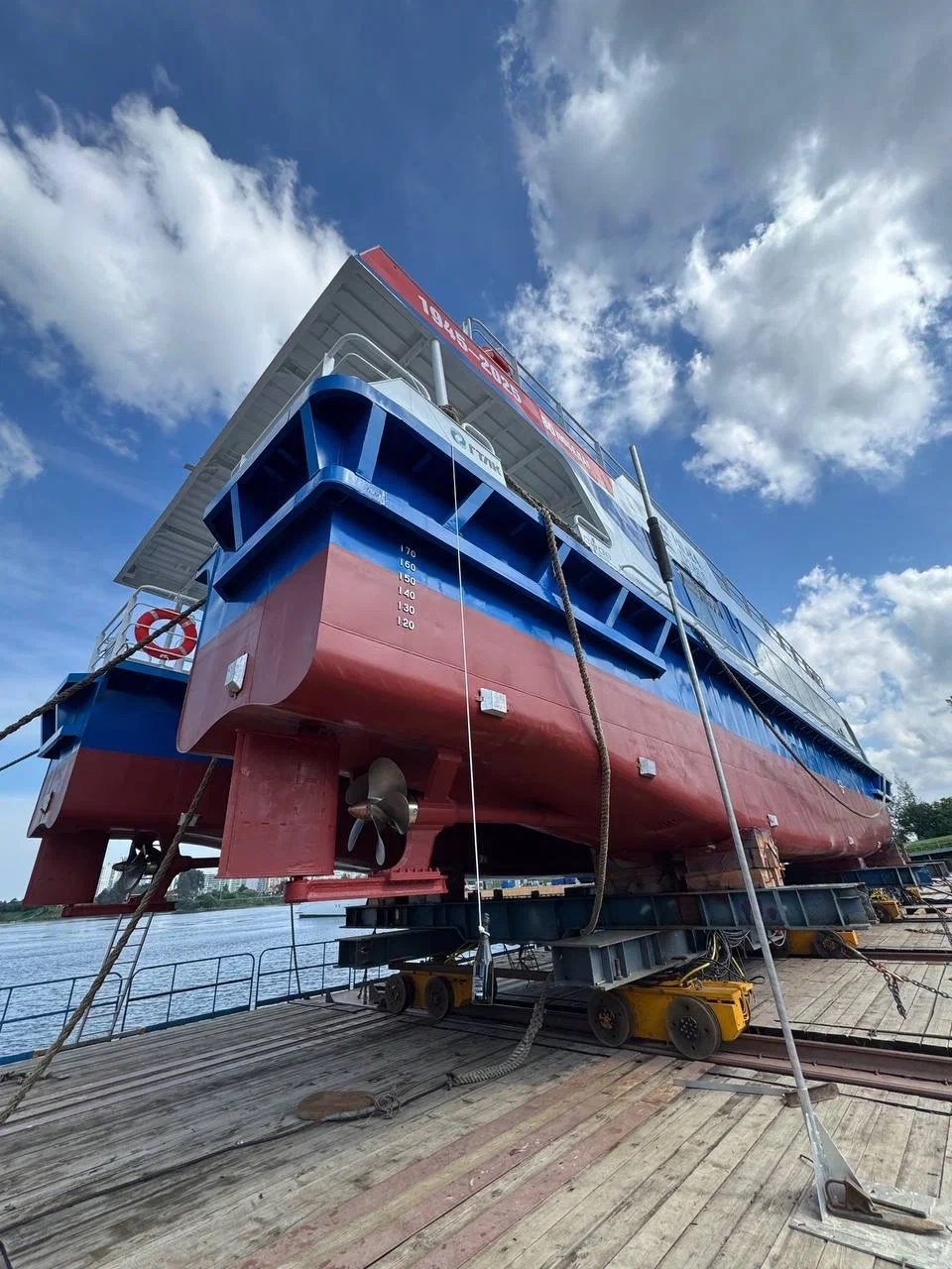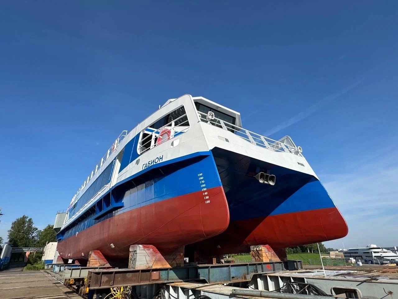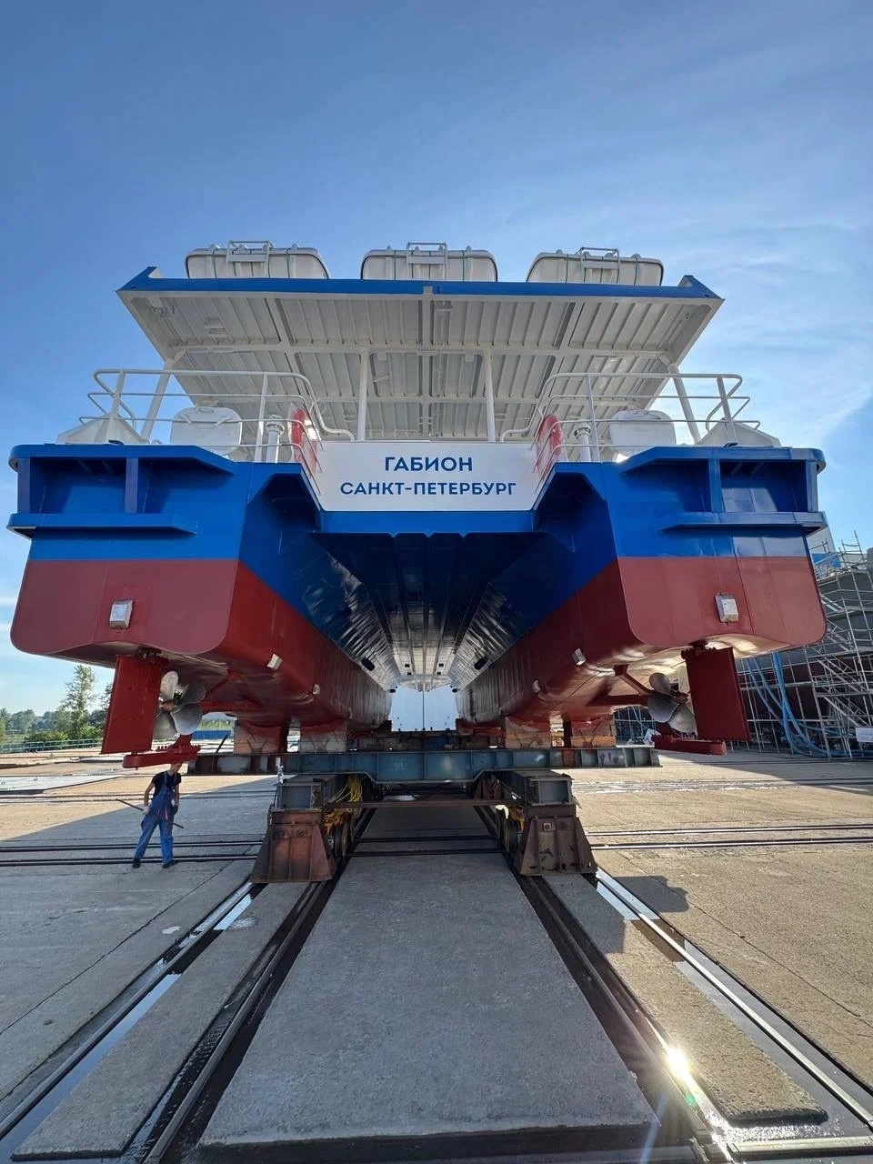 22 июля на Средне-Невском судостроительном заводе ОСК состоялась торжественная церемония спуска на воду экскурсионно-прогулочного пассажирского катамарана «Габион» проекта 04710 «Соммерс». Крестной матерью прогулочного катамарана стала Татьяна Ивановна Чекалова – ответственный секретарь Морского совета при Правительстве Санкт‑Петербурга. Катамаран «Габион» стал третьим судном в серии катамаранов проекта 04710 «Соммерс», который строится в рамках соглашения о сотрудничестве между Минпромторгом России, туристско-рекреационным кластером «Остров фортов» и судоходной компании «Нева Тревел», подписанного на полях Петербургского международного экономического форума. Катамараны проекта 04710 спроектированы с учетом особенностей расположения фортов в акватории Финского залива и будут осуществлять перевозки пассажиров к полностью изолированным от берега фортам «Кроншлот» и «Император Александр Первый», которые будут отреставрированы и открыты для посещения в 2026 году. В праздничном мероприятии приняли участие представители региональной власти, администрация предприятия, заводчане и семьи корабелов.