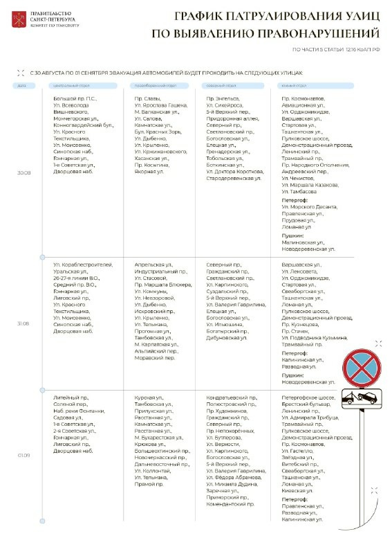 Размещаем график патрулирования улиц по выявлению правонарушений по части 5 статьи 12.16. КоАП РФ с 30.08.2021-01.09.2021.