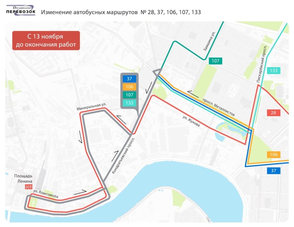 Также вносятся изменения в трассы автобусов №№ 28, 37, 106, 107, 133.