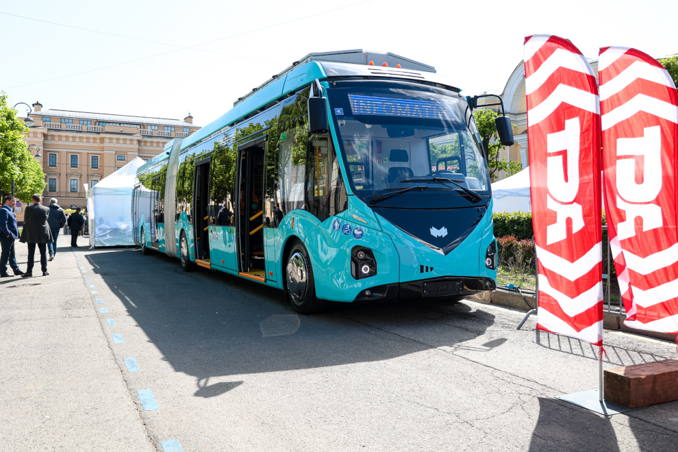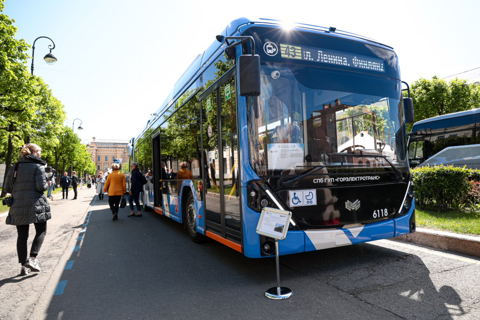 От электротранспорта представлен трамвай 71-932 "Невский"; трамваи моделей 71-923М "Богатырь М" и 71-931М "Витязь М", троллейбус "Ольгерд" с увеличенным автономным ходом. Все эти транспортные средства уже работают на маршрутной сети Петербурга. Также выставлена реплика трамвая ЛМ-33 (на основе ЛМ-99 СОЛО), который сегодня обслуживает экскурсионный маршрут Т1 "Первый туристический" и головной поезд метро "Балтиец".