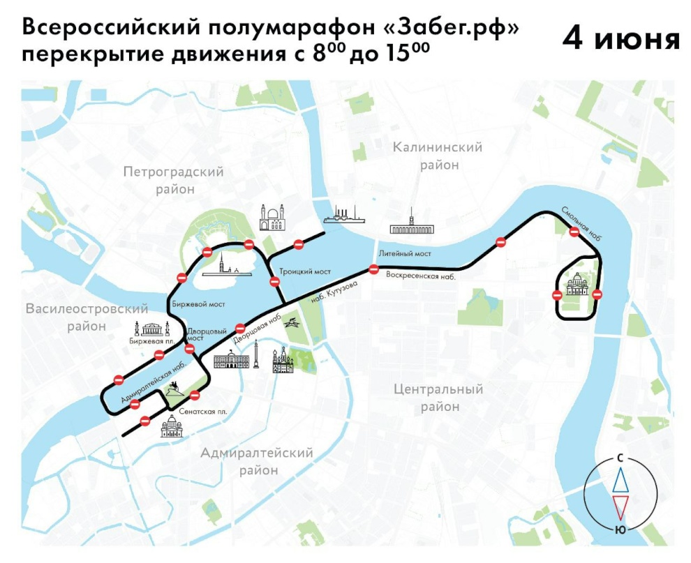 В течение дня, с 00:00 до 23:59 4 июня, будет запрещена остановка транспортных средств на 24 улицах. В их числе - Исаакиевская, Сенатская, Суворовская и Биржевая пл., Конногвардейский бульвар, пл. Труда, Адмиралтейская, Английская, Университетская, Мытнинская, Кронверкская и Дворцовая наб., Смольный пр., Миллионная и Лафонская ул.