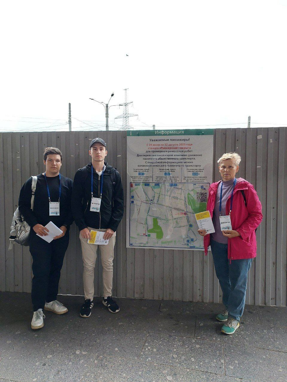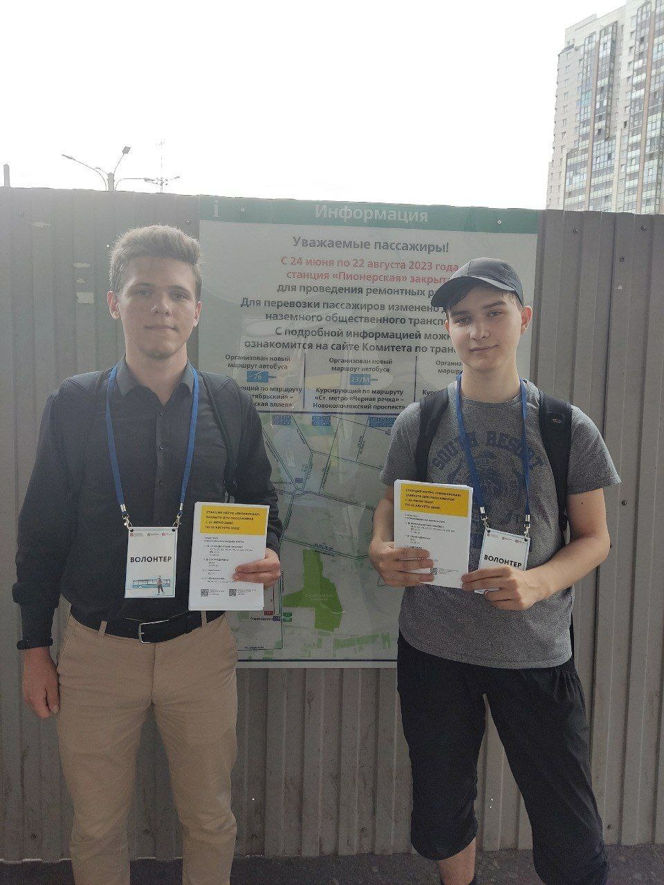 Почти неделю, начиная с 22 июня, они дежурили у входа и выхода станции и рассказывали горожанам об альтернативных маршрутах наземного транспорта на период ремонта "Пионерской".