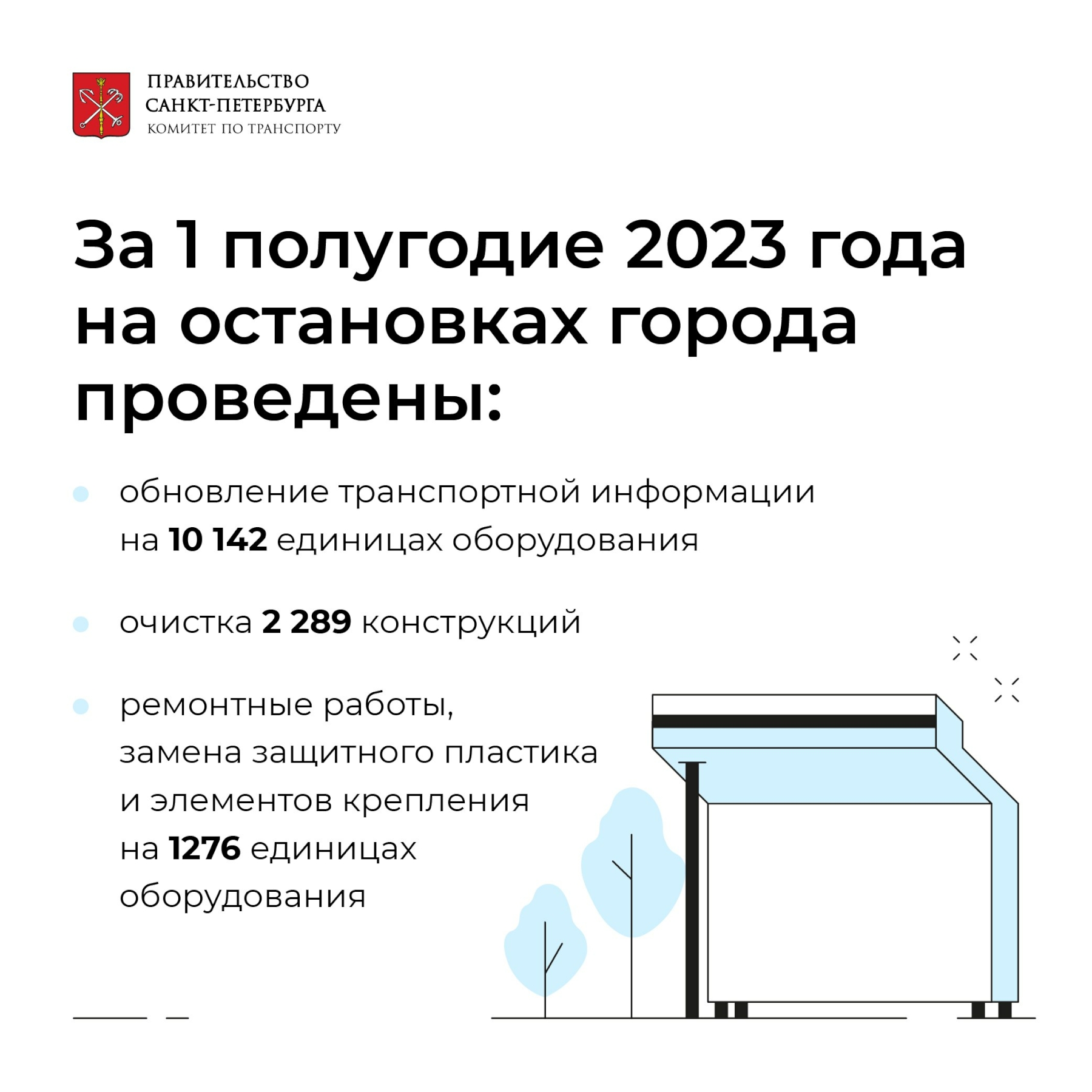 С января по июнь 2023 года подведомственным Комитету по транспорту ГКУ «Организатор перевозок» обновлена транспортная информация на 10 142 единицах оборудования на остановочных пунктах Петербурга.