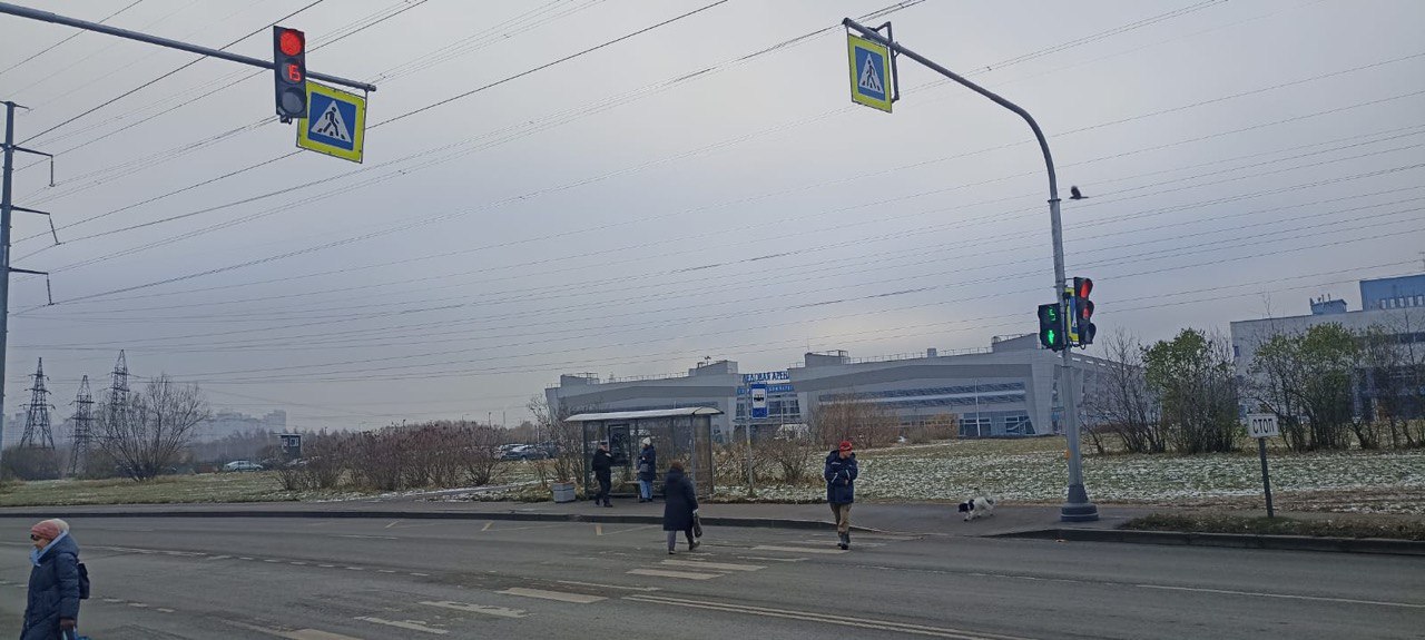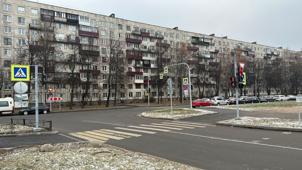 У дома 21 по улице Передовиков новый светофорный объект делает более безопасным путь горожан, направляющихся от остановок автобусов к объектам притяжения, в том числе к Детской поликлинике № 66, Городской поликлинике № 107 и Поликлиническому отделению № 103.