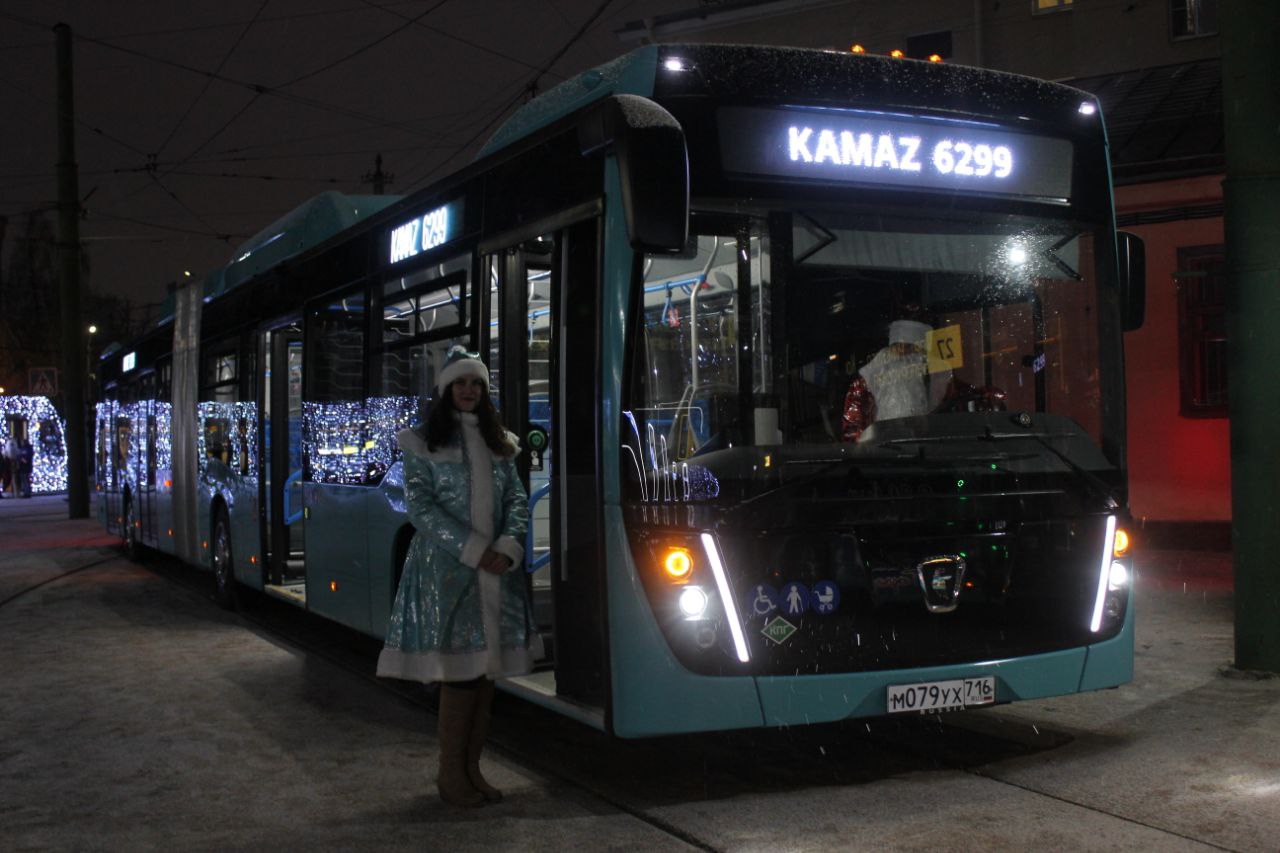 Автобус КАМАЗ-6299 производства ПАО «КАМАЗ». Это газомоторный автобус особо большого класса, который работает на компримированном природном газе, оснащен газовым двигателем мощностью 320 л.с. и имеет общую пассажировместимость - 155 человек. Сегодня на презентации новой техники машина была передана представителями производителя ГУП «Пассажиравтотранс» в тестовую эксплуатацию в рамках соглашения, подписанного на IV Международном фестивале SPbTransportFest в мае 2023 года. Планируемый срок тестовой обкатки - три месяца.