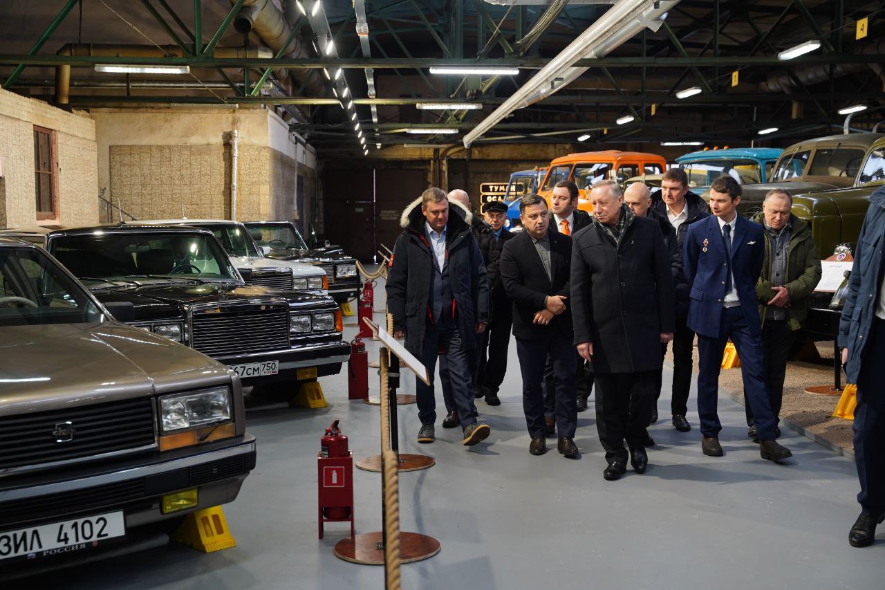 На площадке Автобусного парка № 1 ГУП «Пассажиравтотранс» создана экспозиция раритетного автомобильного транспорта. Коллекцию осмотрел Губернатор Александр Беглов, по поручению которого она и была создана.