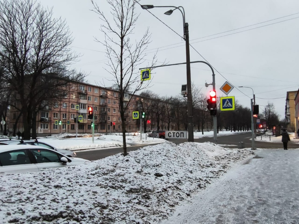 Специалисты Дирекции по организации дорожного движения Санкт‑Петербурга провели транспортные обследования по приведенному адресу: полученные значения интенсивности транспортных и пешеходных потоков подтвердили необходимость установки светофорного объекта на ранее нерегулируемом пешеходном переходе.