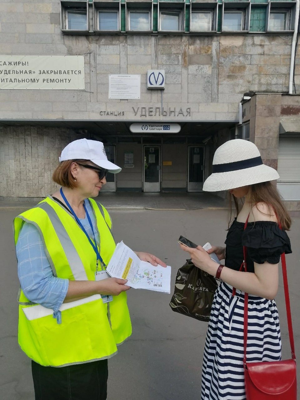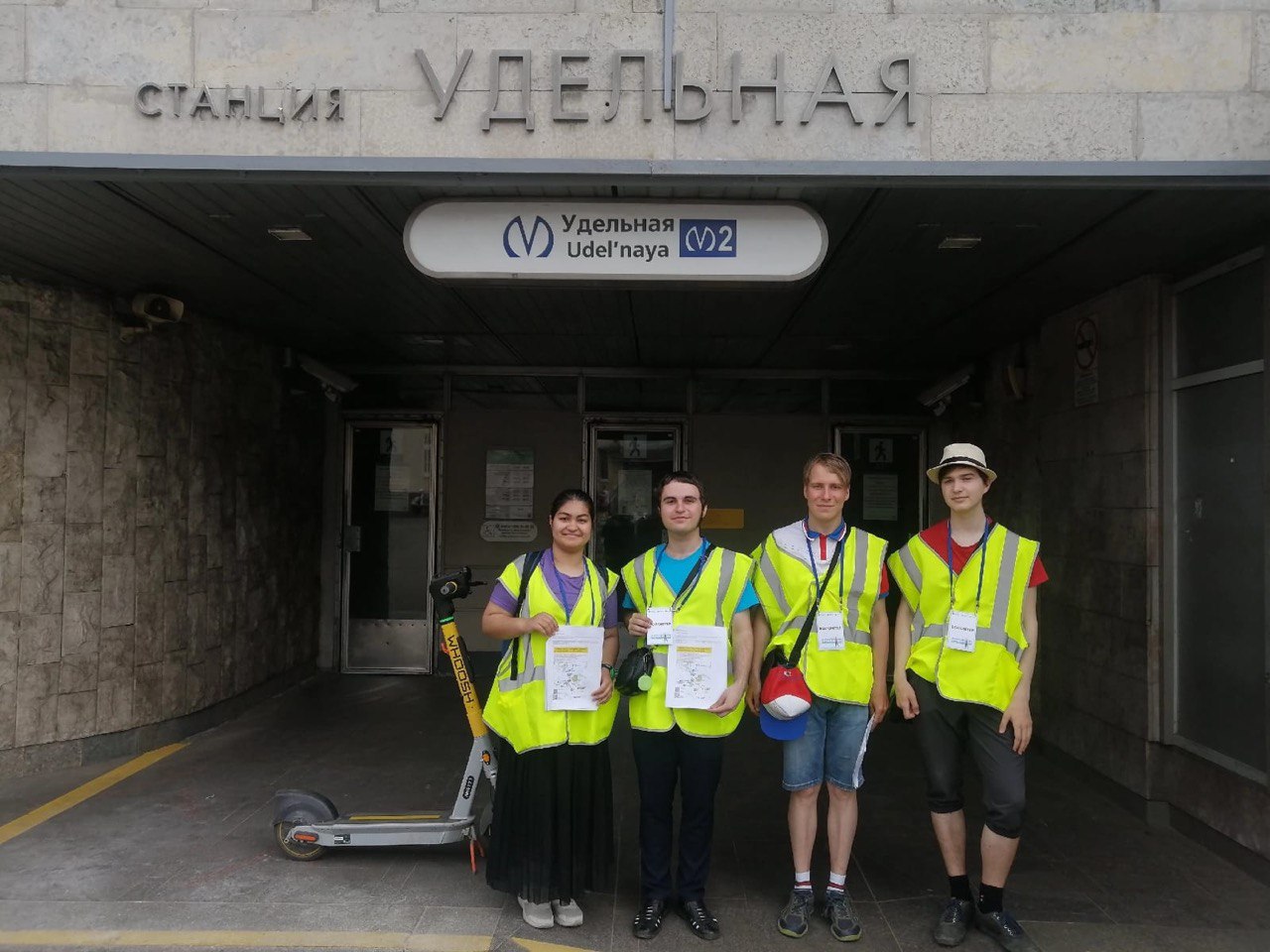 В целях дополнительного информирования пассажиров о работе городского наземного общественного транспорта на период закрытия на капитальный ремонт станции метро «Удельной» в период с 30 мая по 3 июня у вестибюля станции дежурили волонтеры.