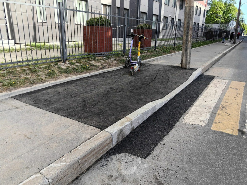 Там были произведены разборка существующего бордюрного камня, снятие асфальтобетонного покрытия, выемка грунта, выравнивание щебнем, установка бортовых камней, устройство асфальтобетонного покрытия тротуара.