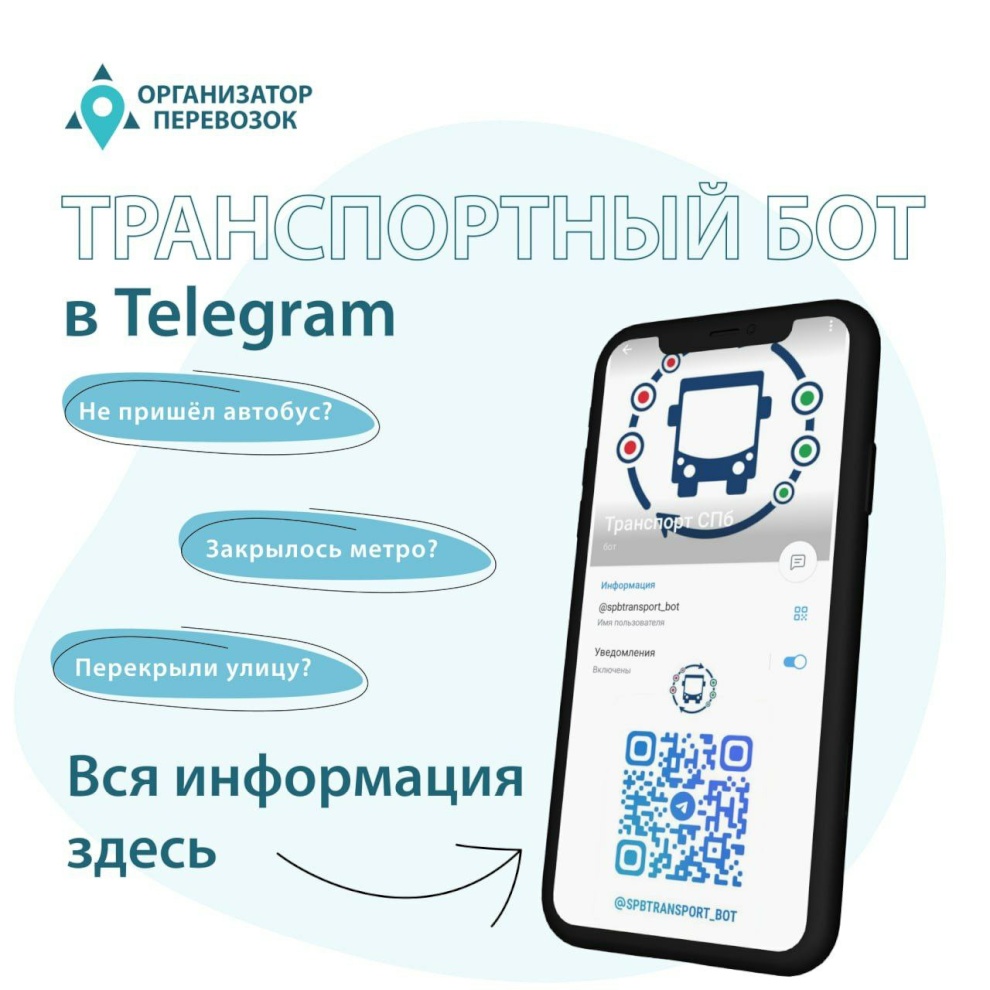 В целях повышения уровня информирования пассажиров общественного транспорта Петербурга о работе городского транспорта ГКУ «Организатор перевозок» усовершенствована работа транспортного чат-бота в Телеграм – «Транспорт СПб» (ранее – «Transport_SPb»).