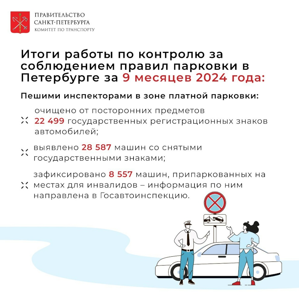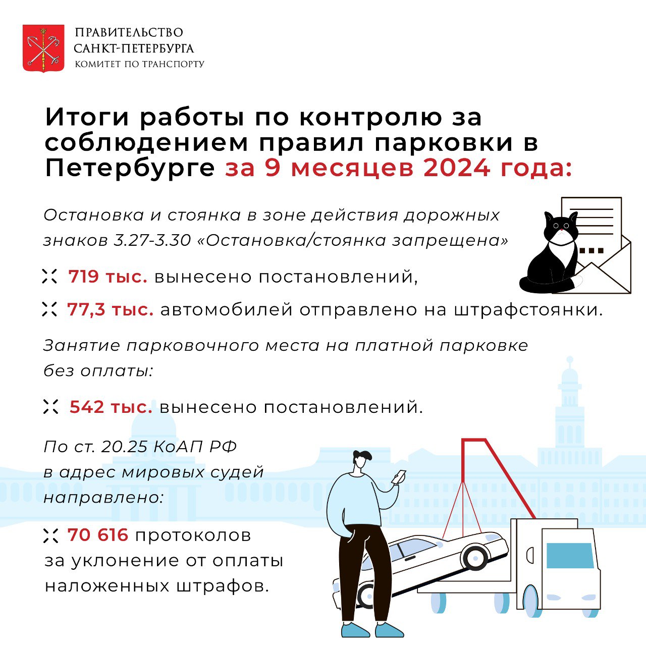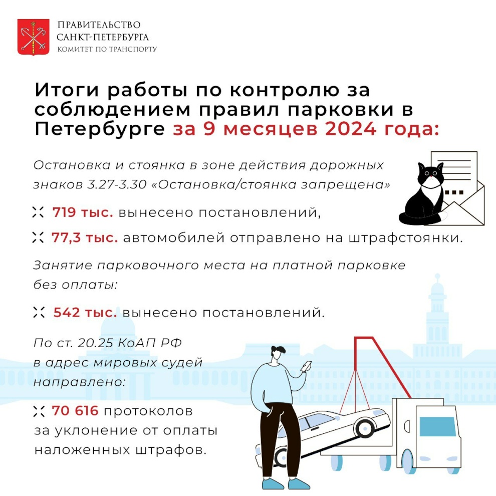 За несоблюдение петербуржцами правил пользования платной парковкой вынесено еще порядка 542 тыс. постановлений, предусмотренных ст. 37-2 Закона Санкт‑Петербурга от 31.05.2010 № 273-70.