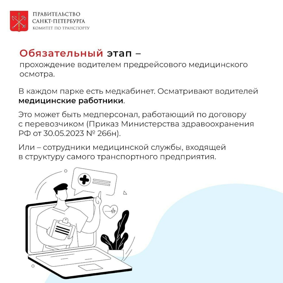 Перед выходом в рейс каждое транспортное средство должно пройти технический осмотр, а водитель – обязательный медицинский осмотр.