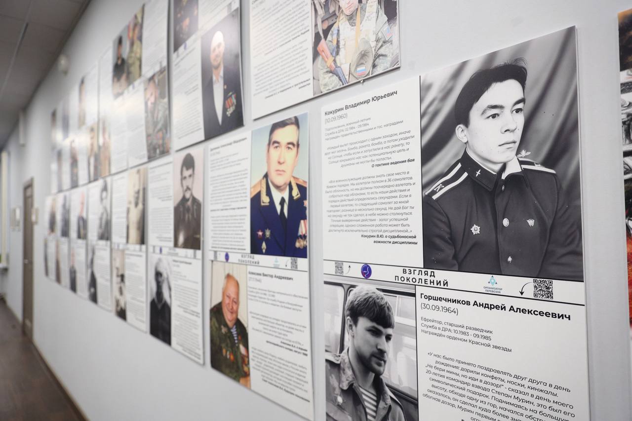 Выставка «Взгляд поколений: Герои Отечества» - это уникальный проект, направленный на сохранение историй советских и российских солдат – в нее вошли 30 уникальных фотографий и интервью настоящих Героев - участников Специальной военной операции и боевых действий в Афганистане. Выставка организована волонтерским движением подведомственного Комитету по транспорту учреждения ГКУ «Организатор перевозок».