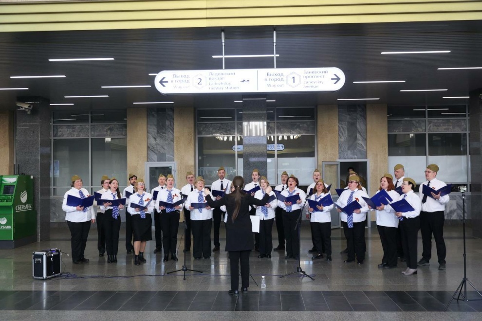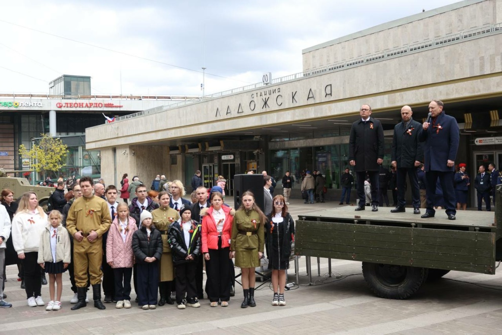 Сегодня на площадке перед вестибюлем станции метро «Ладожская» состоялся торжественный спектакль-концерт «Память поколений», посвящённый подвигу советского народа в Великой Отечественной войне. Мероприятие, организованное Петербургским метрополитеном при участии ГУП «Пассажиравтотранс», объединило творческие коллективы, ветеранов и горожан в преддверии 80-й годовщины Великой Победы.
