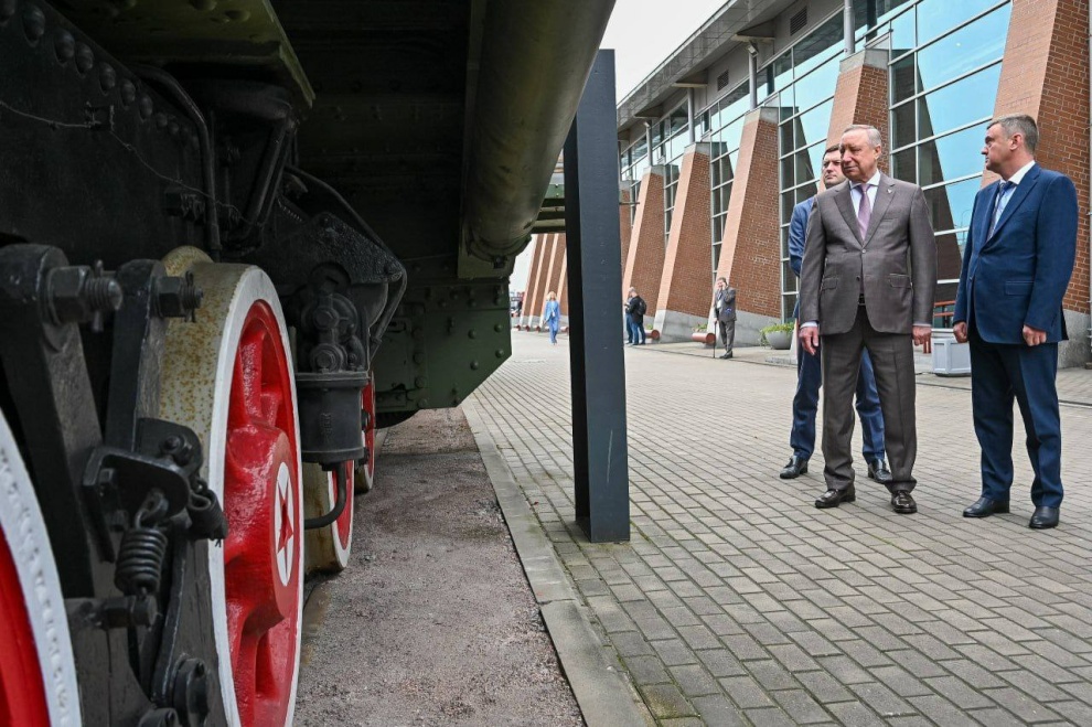 Губернатор Санкт‑Петербурга Александр Беглов в сопровождении вице-губернатора Кирилла Полякова и председателя Комитета по транспорту Валентина Енокаева осмотрел выставочную экспозицию. Особое внимание делегации привлекли новейшие образцы отечественного подвижного состава: первый российский пятисекционный низкопольный трамвай «Воевода» и электропоезд постоянного тока ЭП2ДМ.