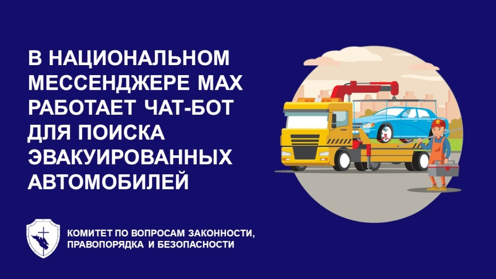 Чат-бот для поиска эвакуированных автомобилей, созданный Комитетом по вопросам законности, правопорядка и безопасности, теперь работает в МАХ. Внедрением и функционированием сервиса занимается подведомственный Комитету Центр материально-технического обеспечения в сфере законности, правопорядка и безопасности.