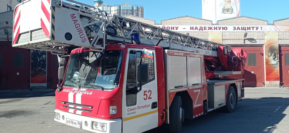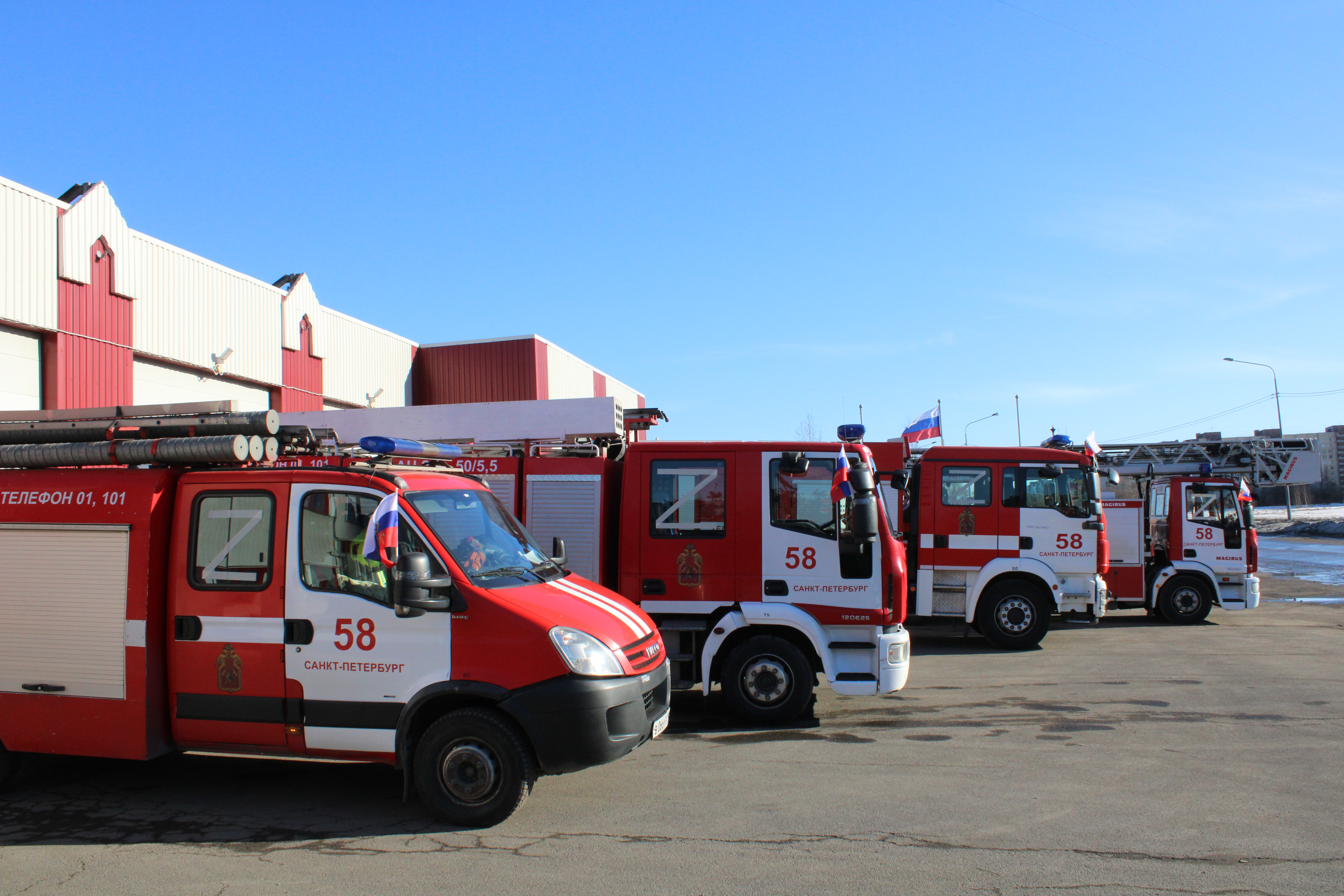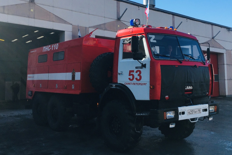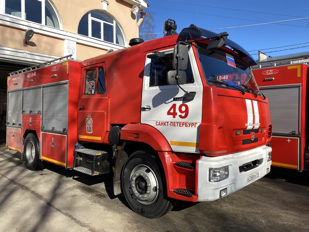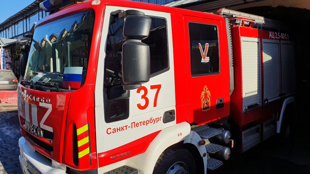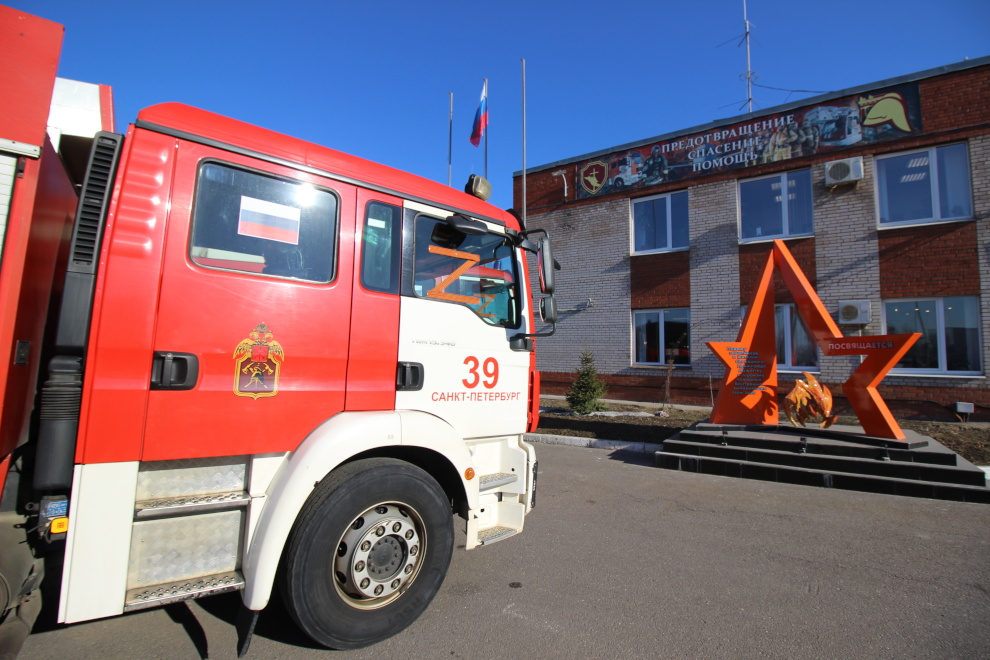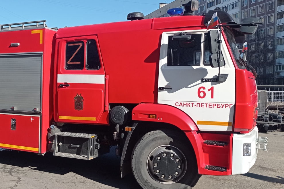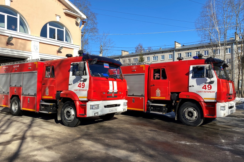 Пожарные автомобили в Петербурге украсили по случаю Дня воссоединения Крыма с Россией