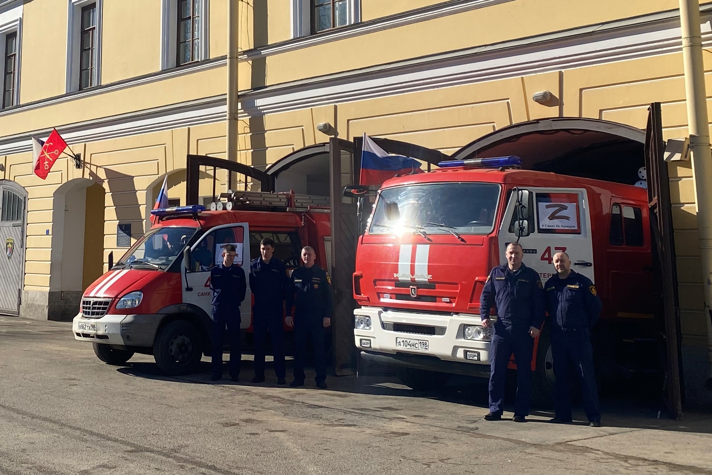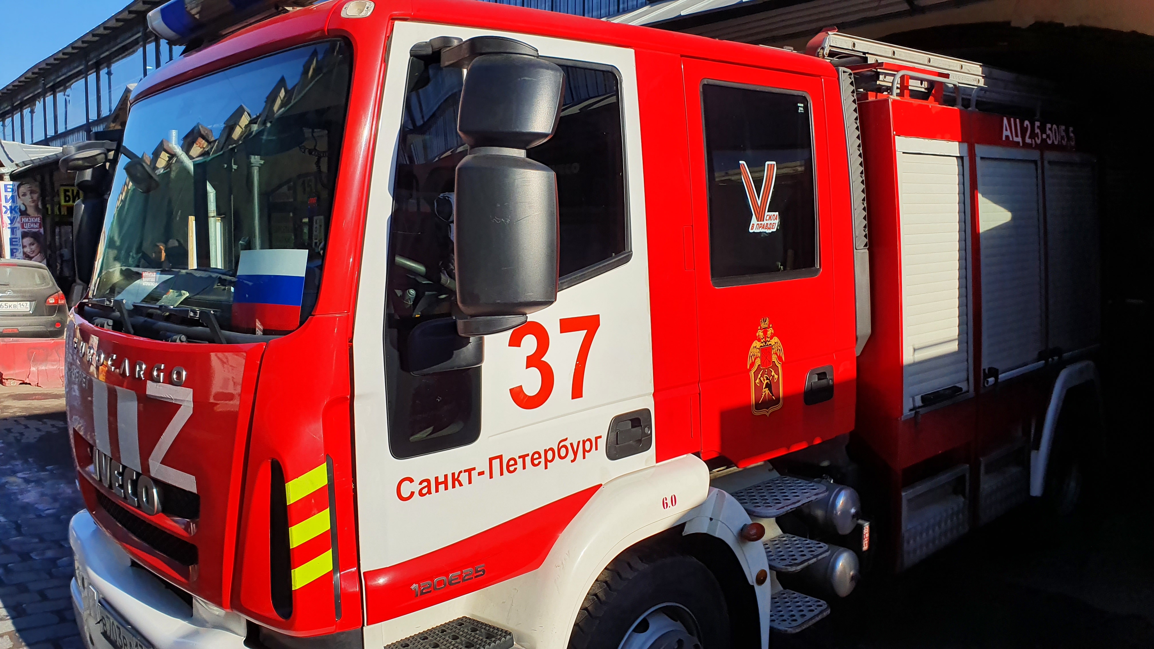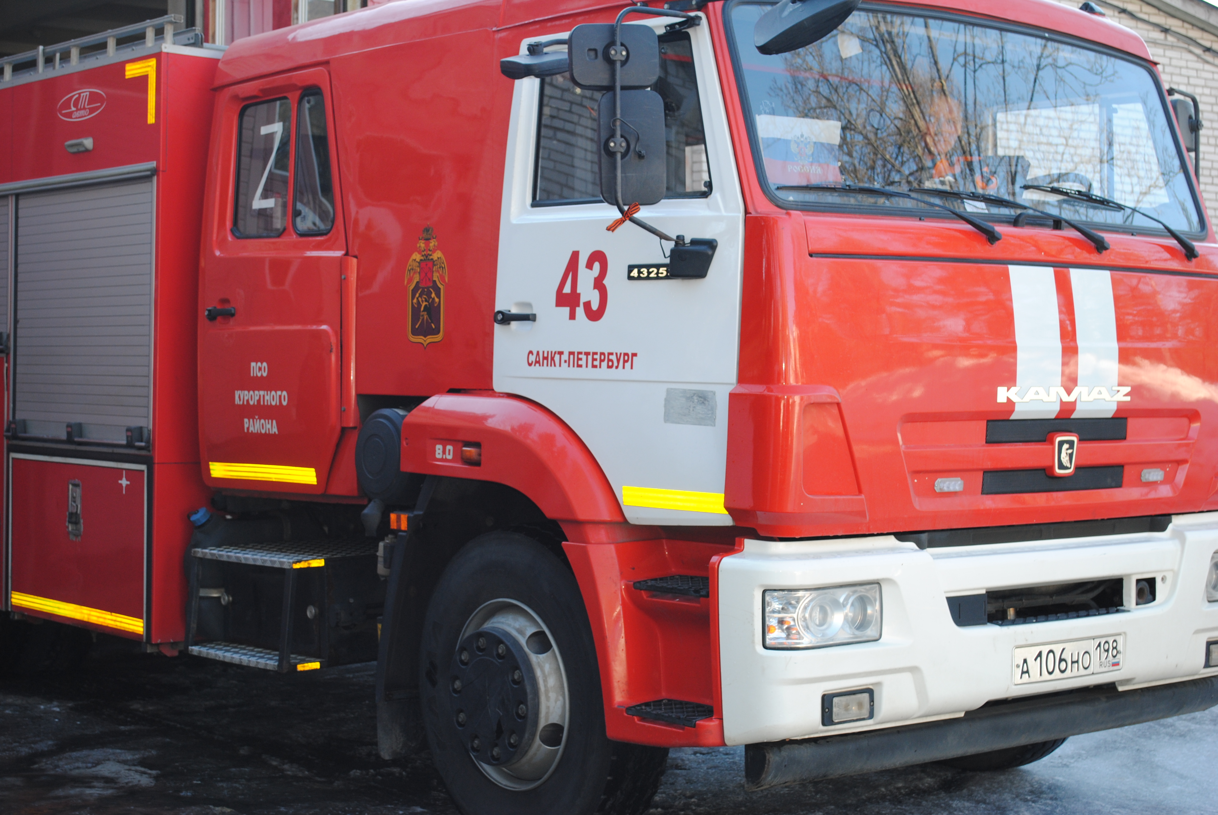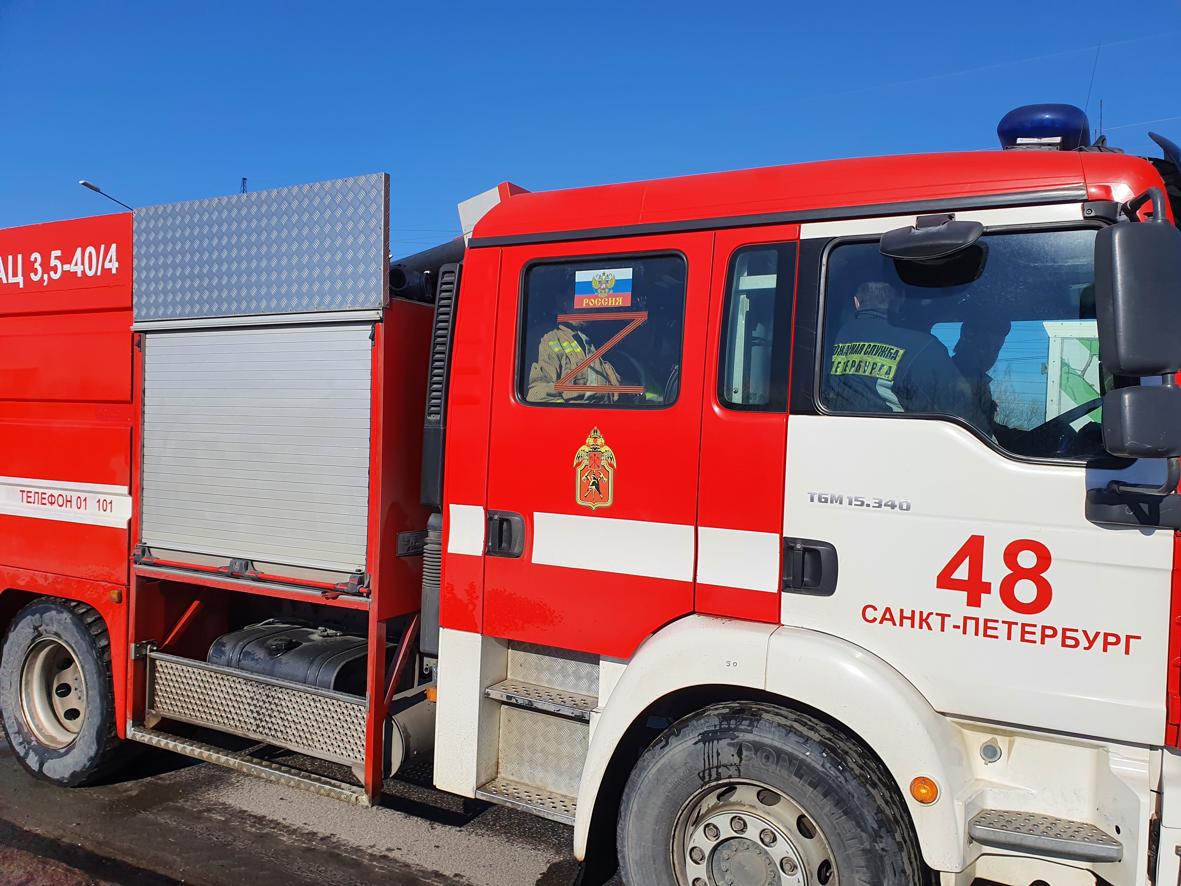 Пожарные автомобили в Петербурге украсили по случаю Дня воссоединения Крыма с Россией