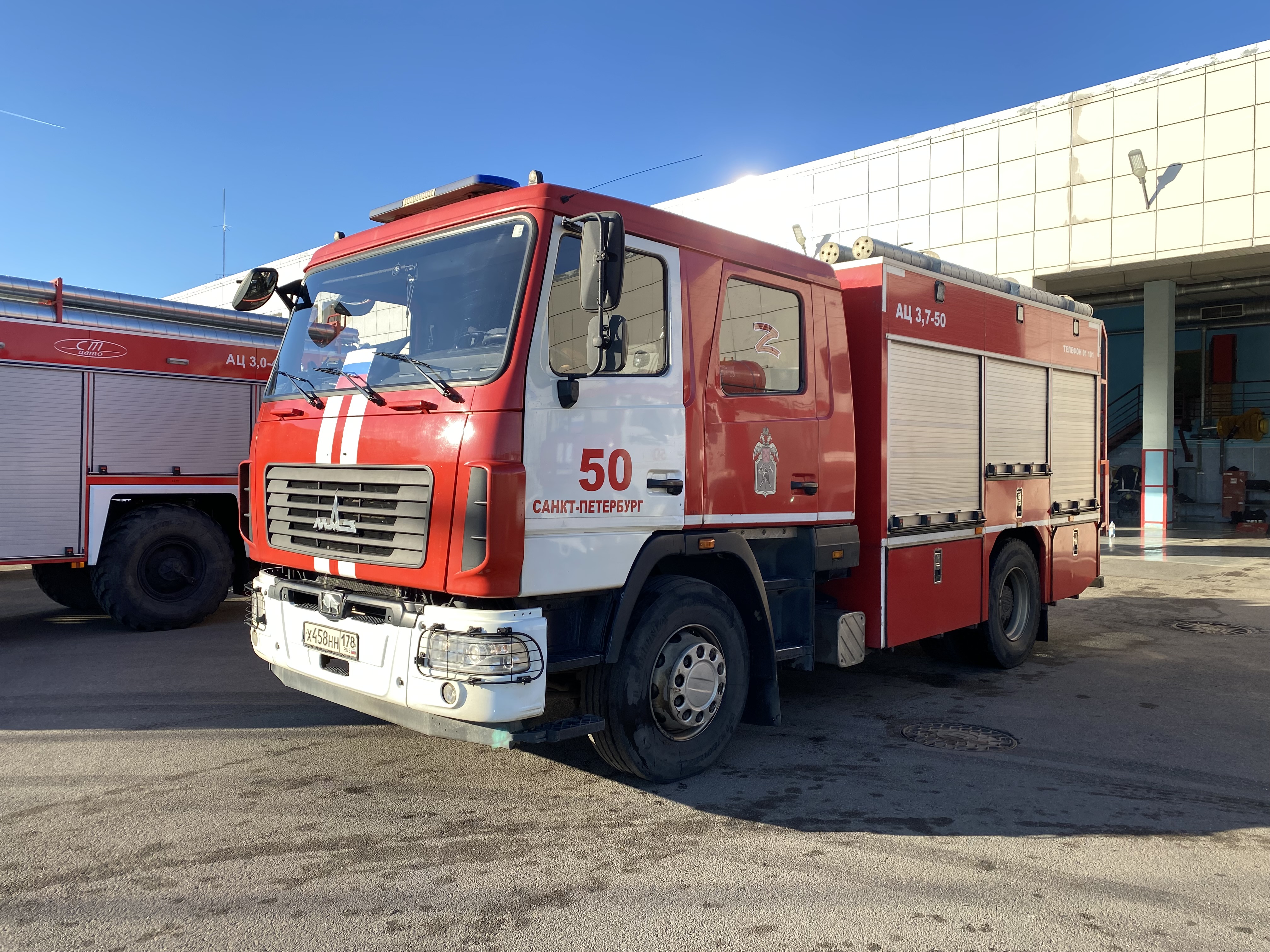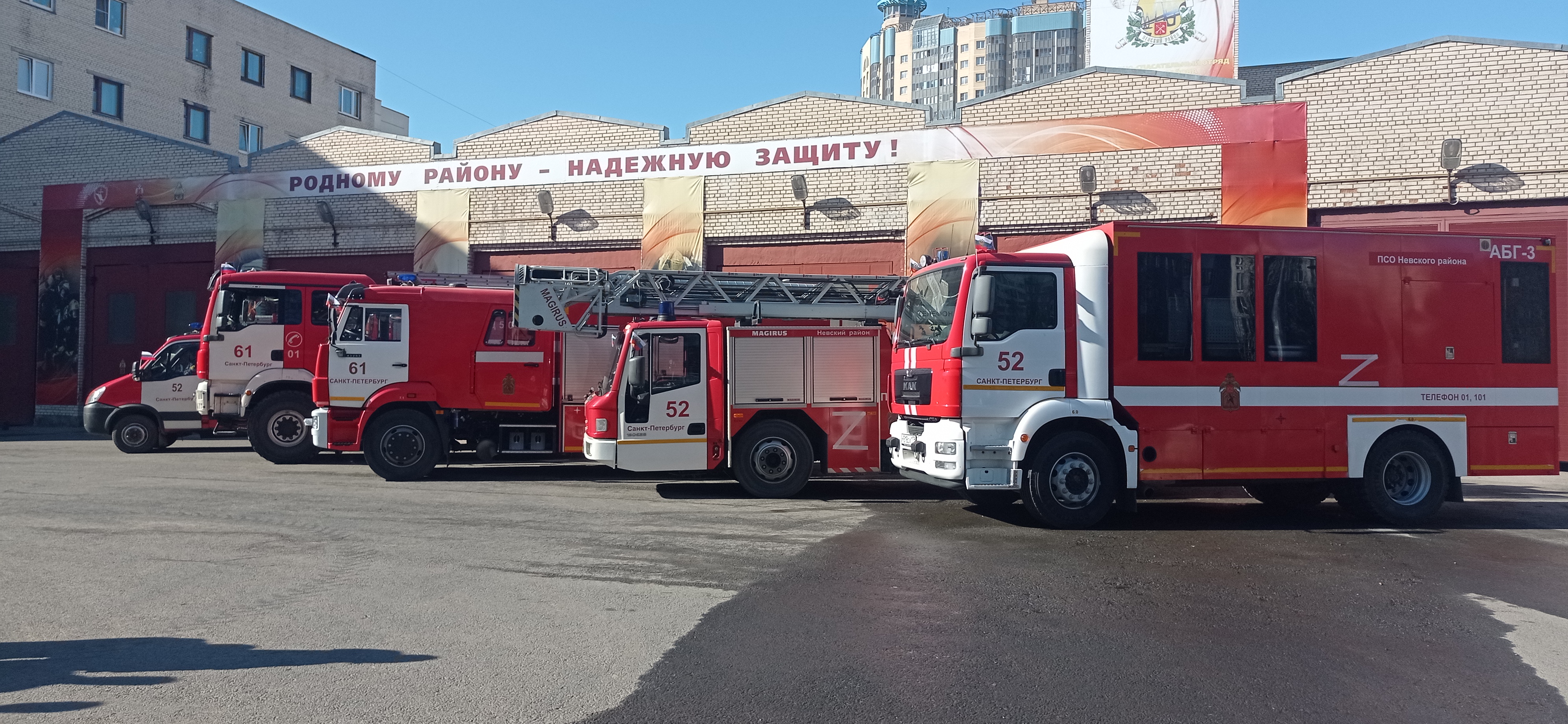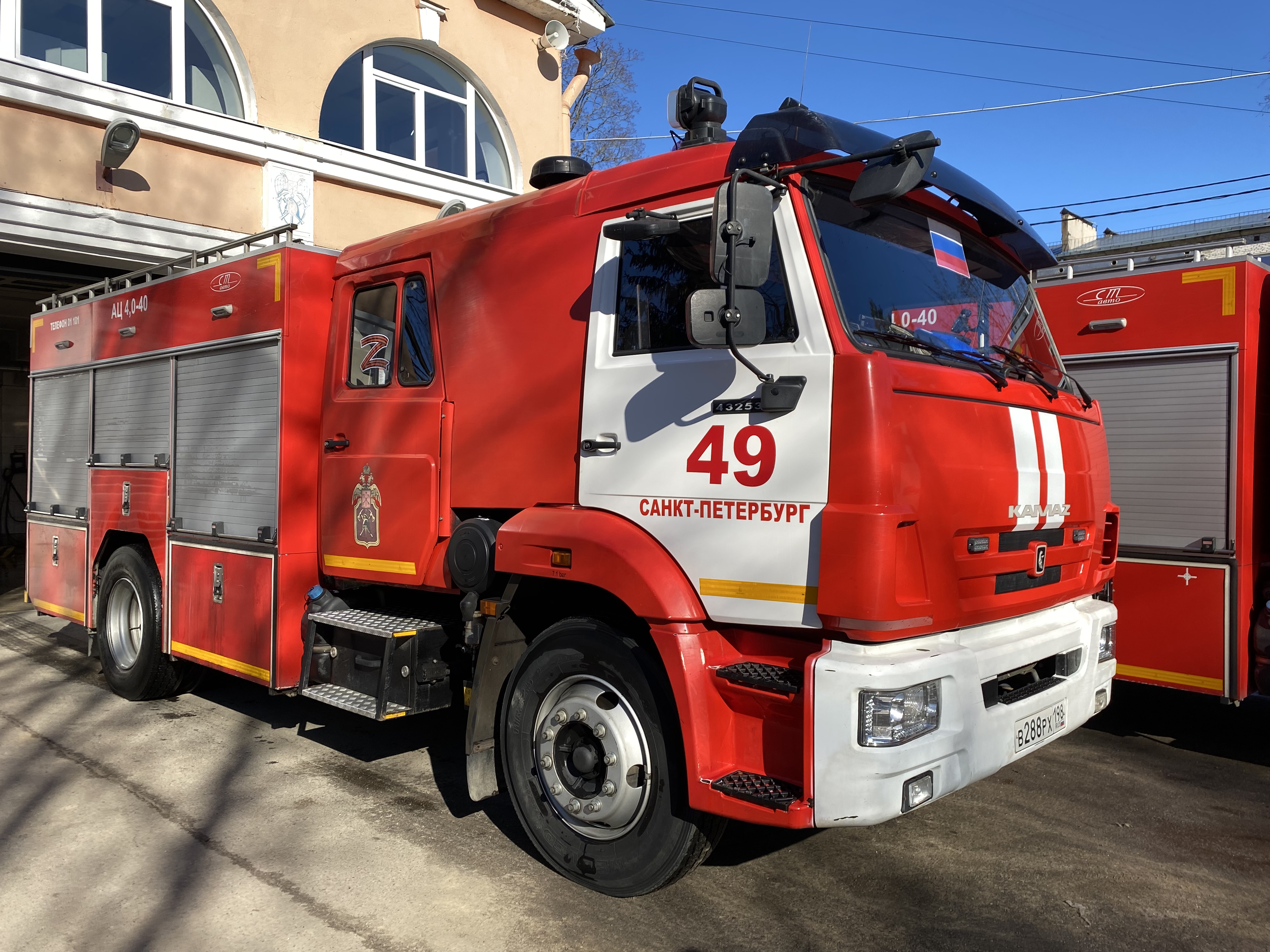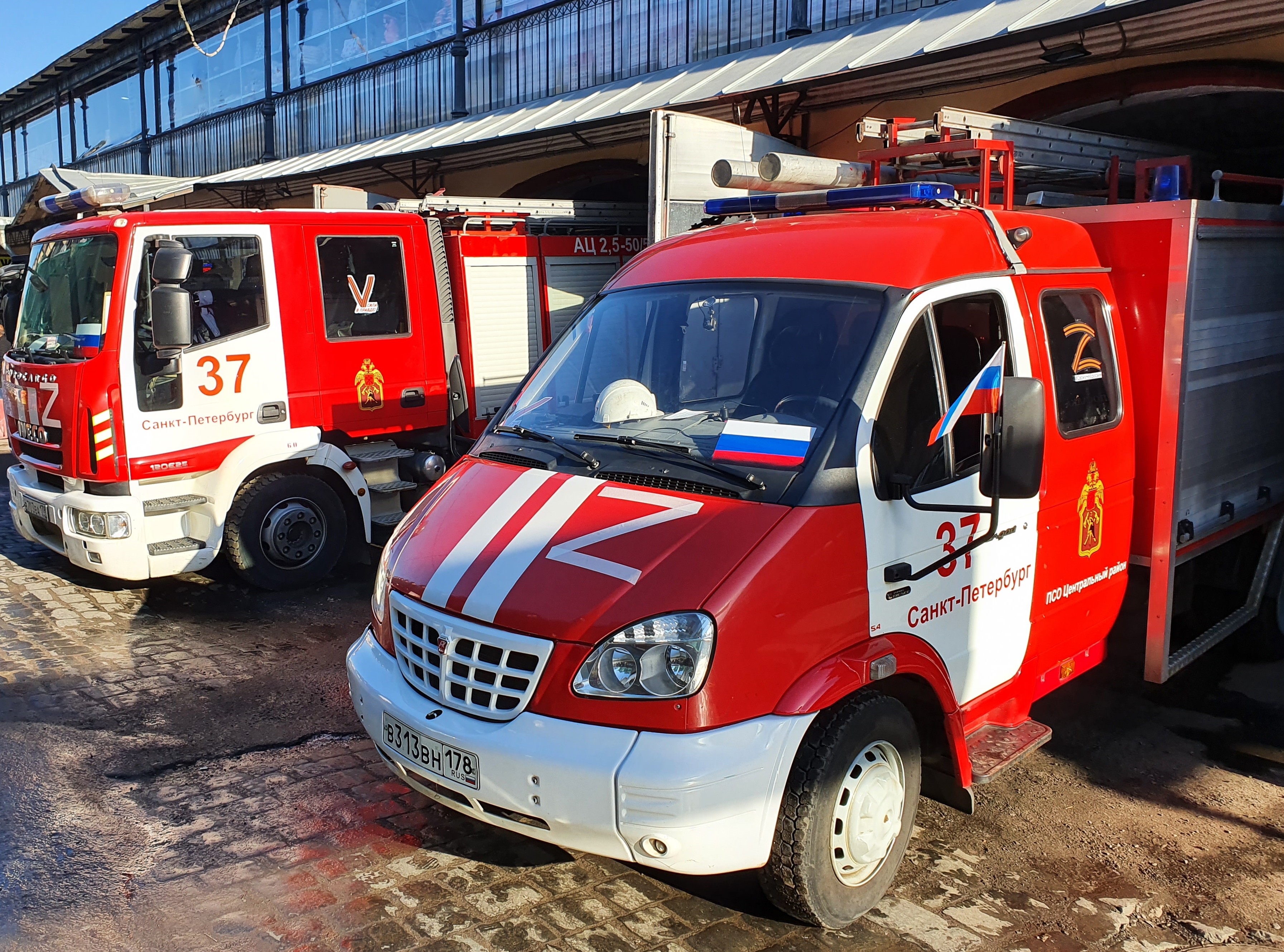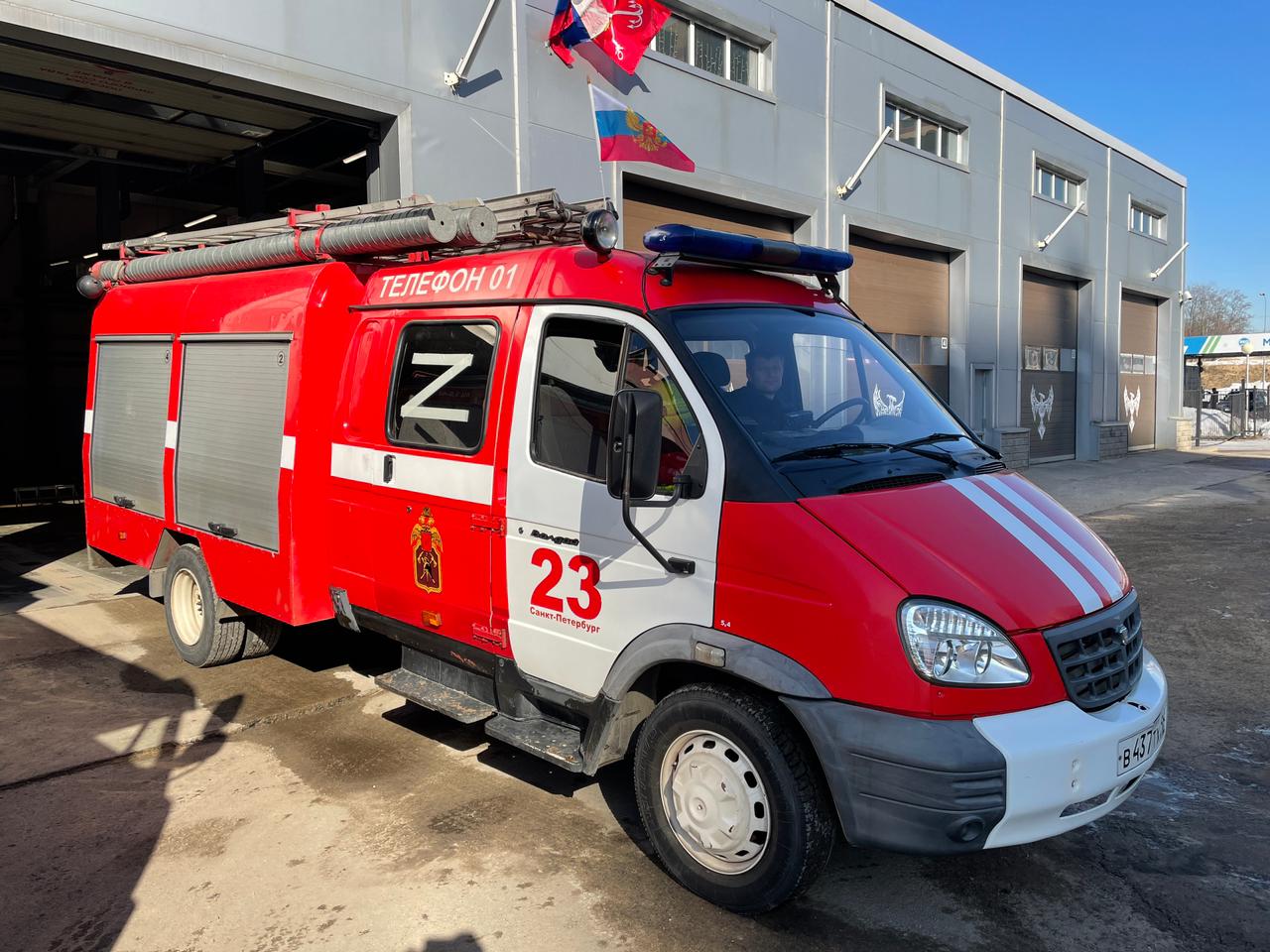 Пожарные автомобили в Петербурге украсили по случаю Дня воссоединения Крыма с Россией