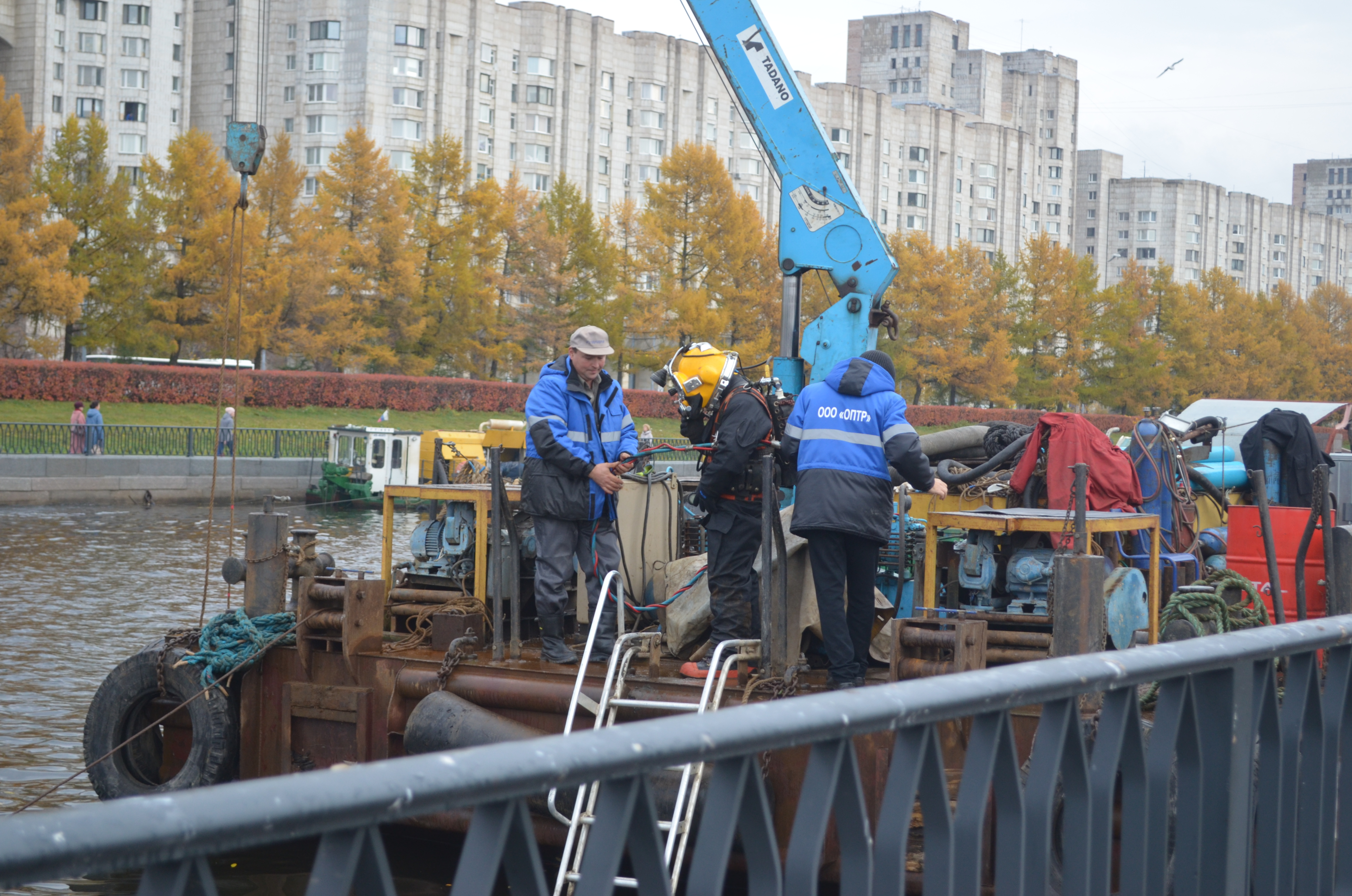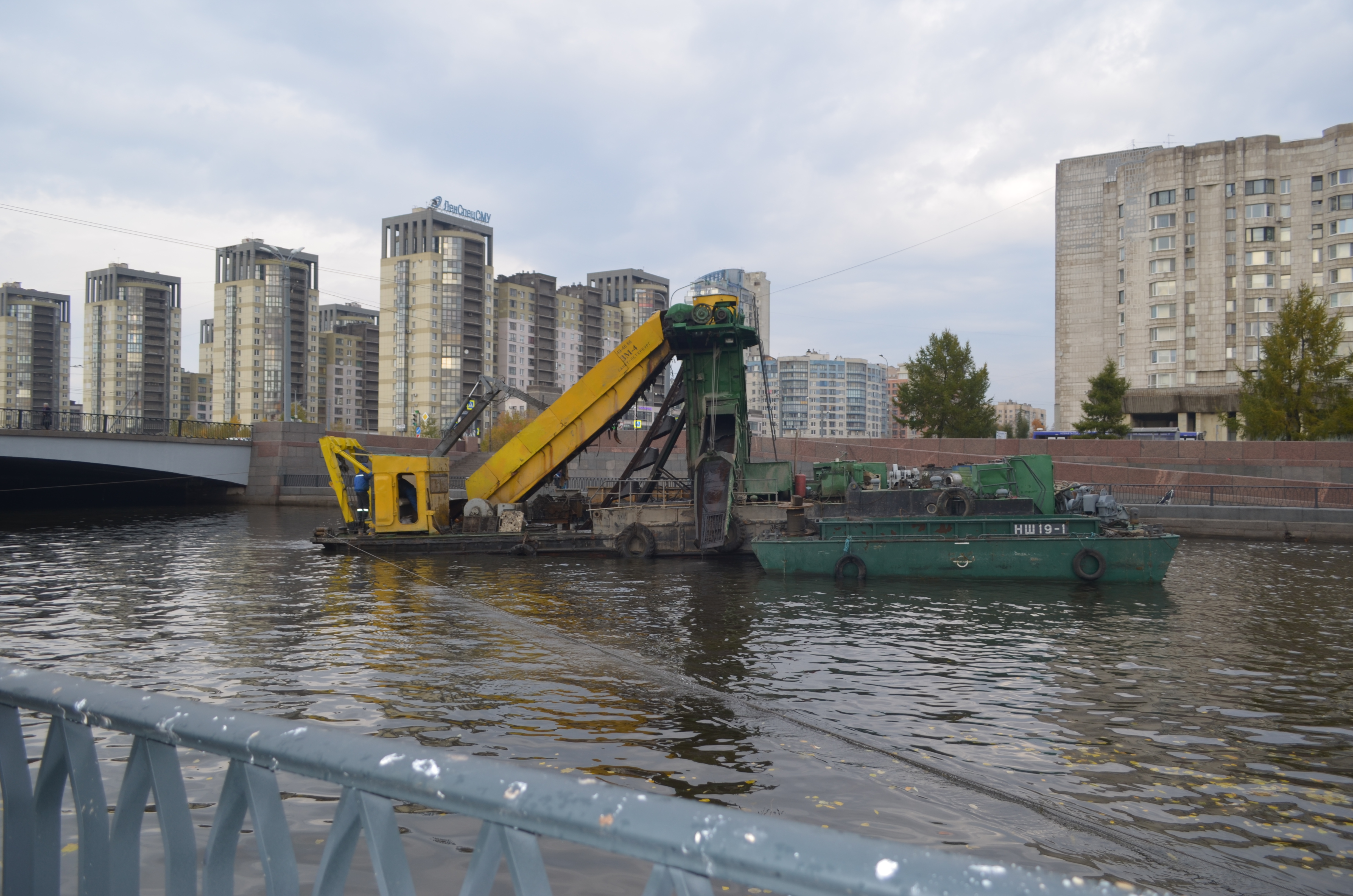 Сейчас на Смоленке выполнены основные работы на участке №4 (ковш от мостов 3-ий Смоленский и 4-ый Смоленский), включающие в себя разработку донных отложений землечерпательной машиной и экскаватором на понтоне, буксировку шаланд и разгрузку с донными отложениями.