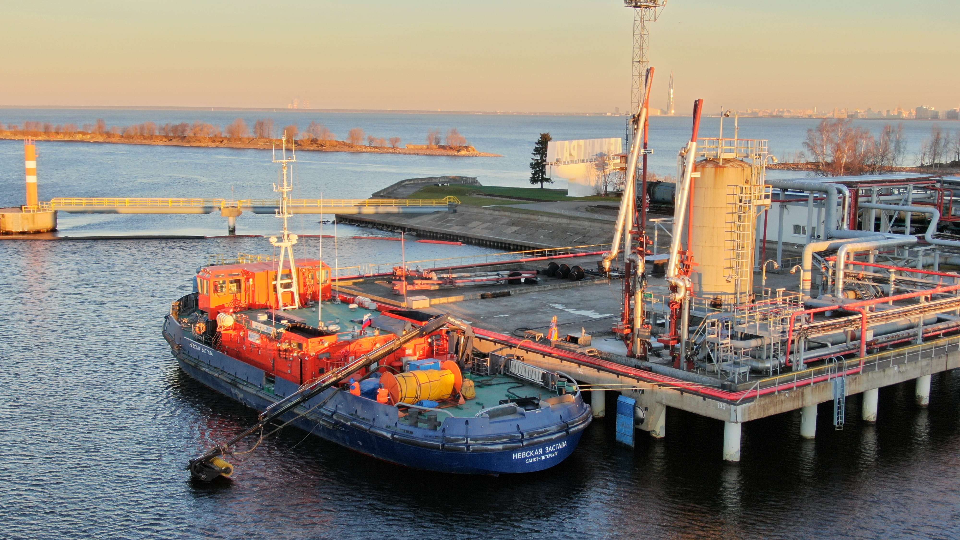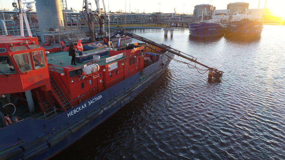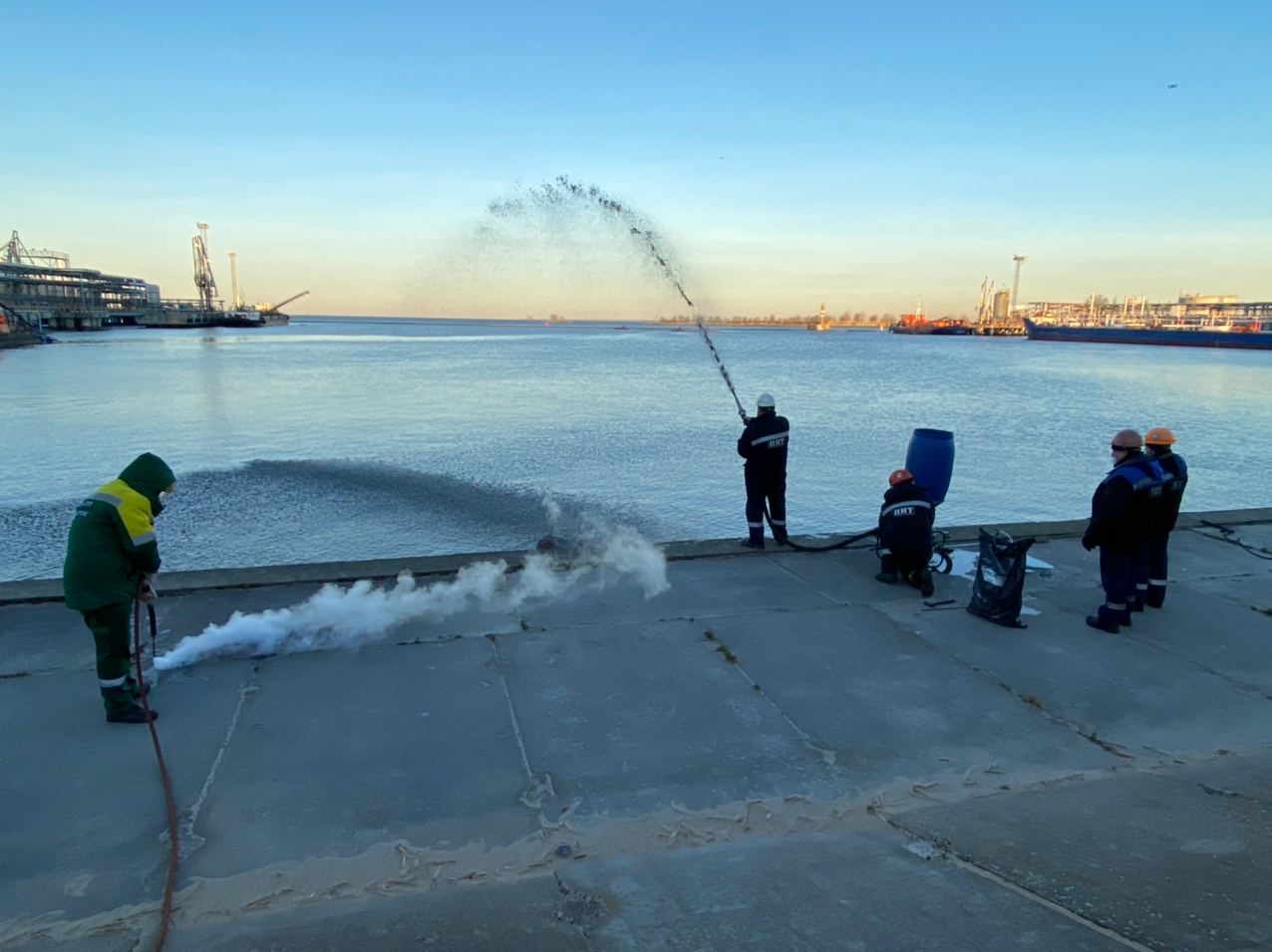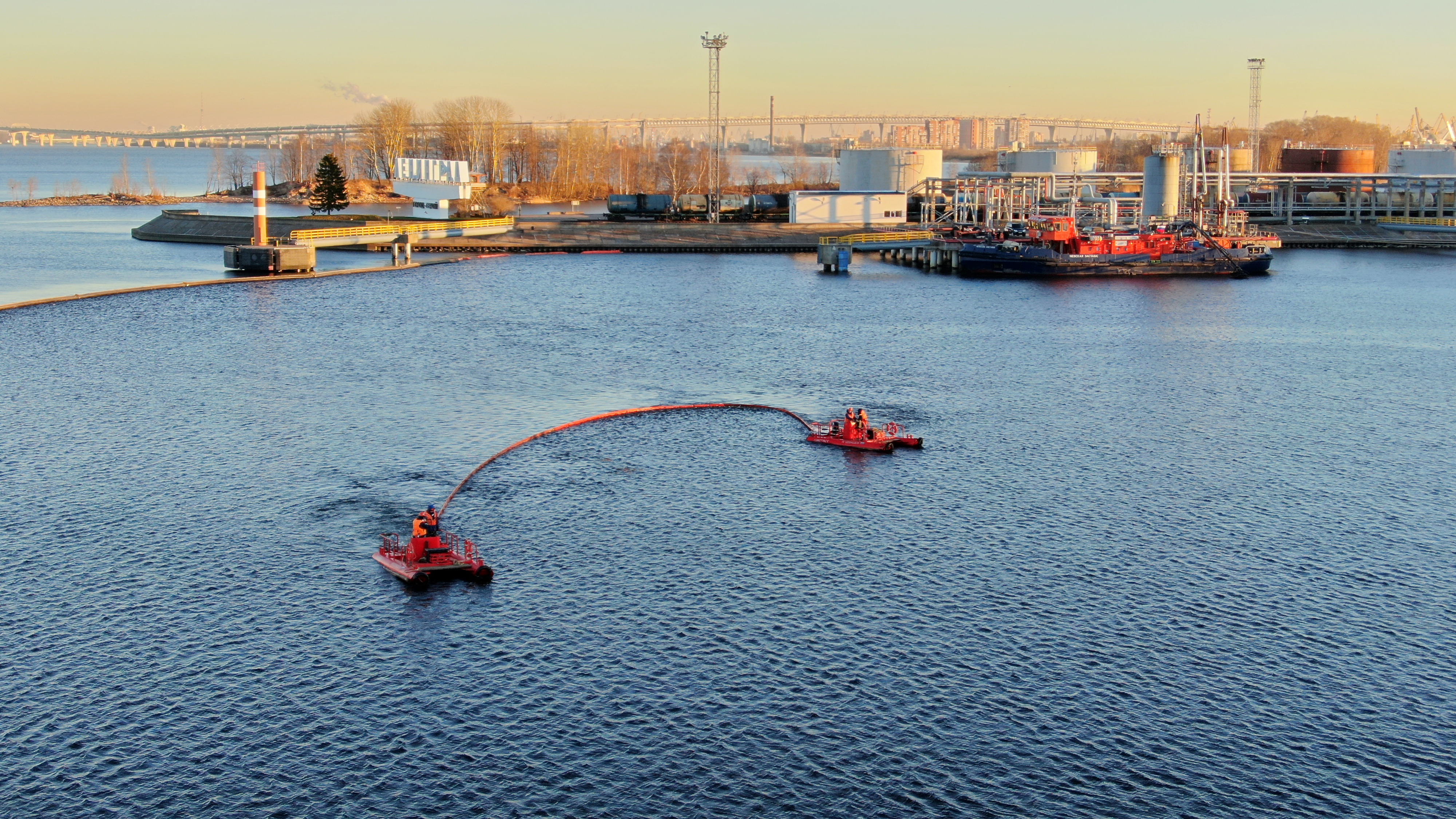 В Большом порту Санкт‑Петербурга состоялись учения по ликвидации нефтеразлива