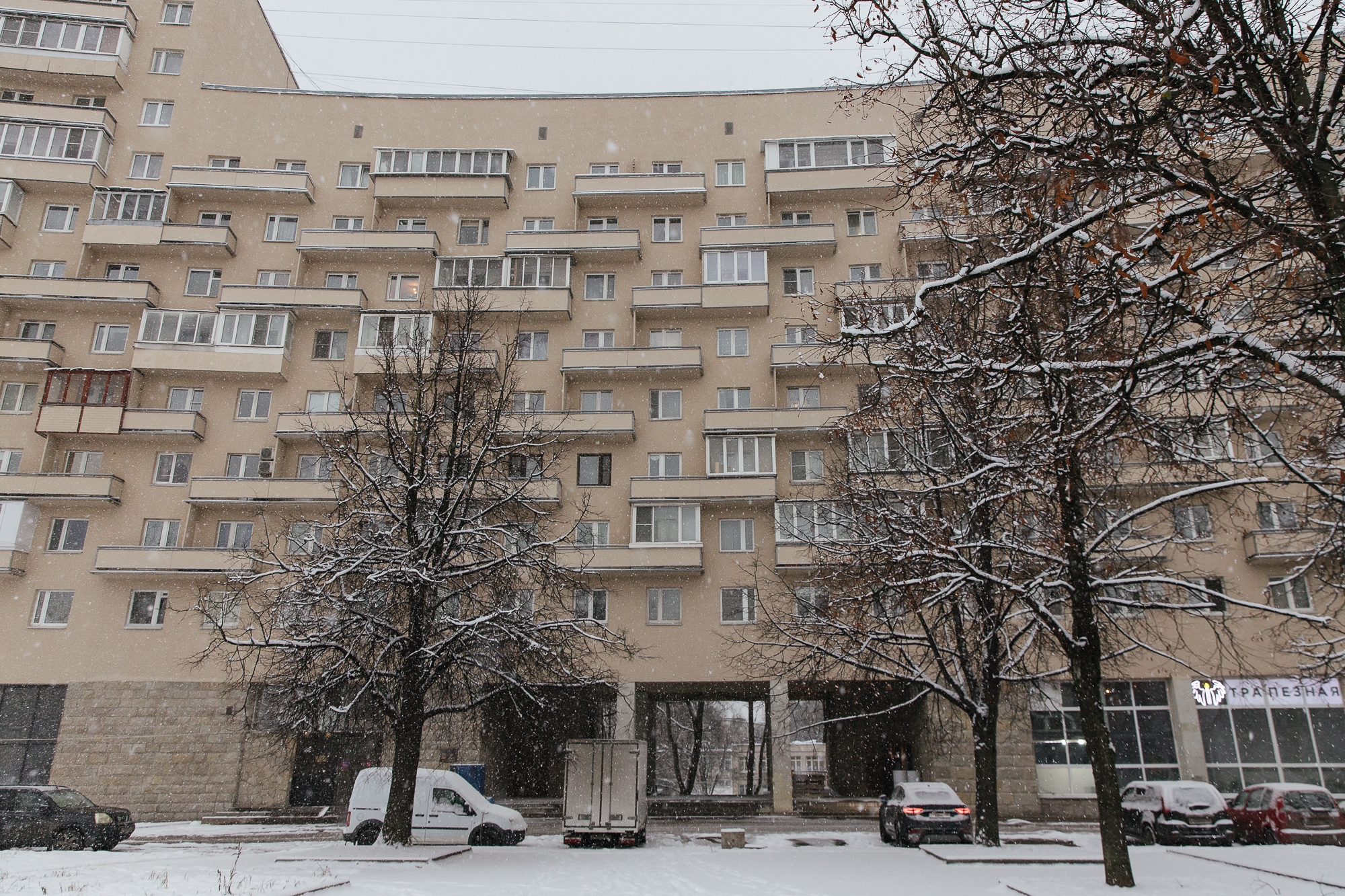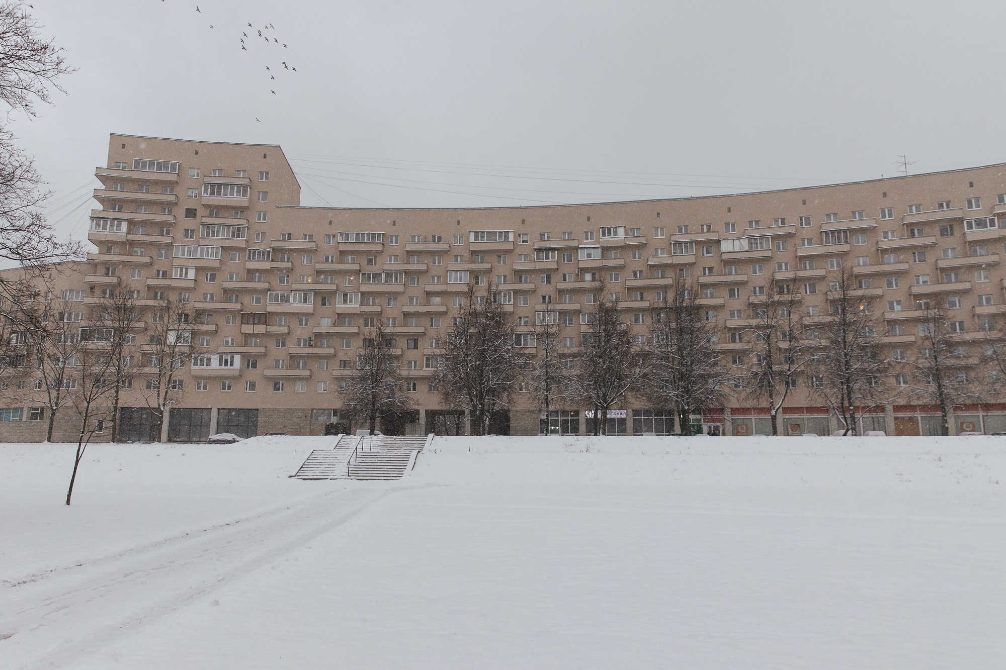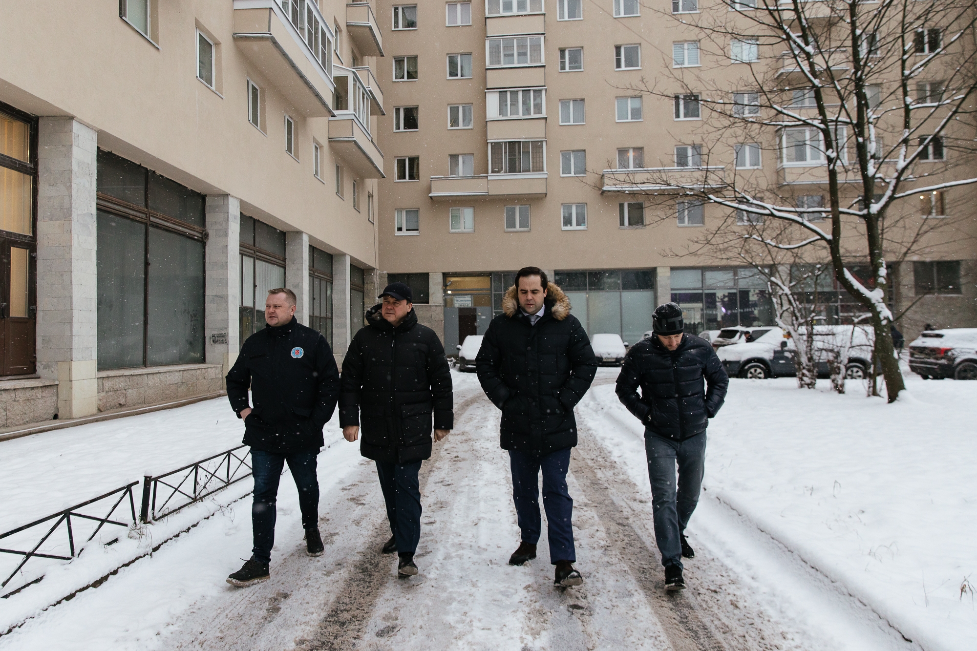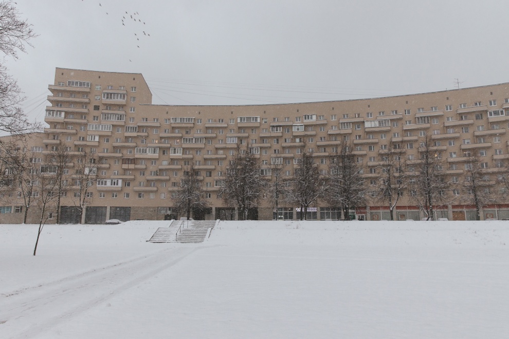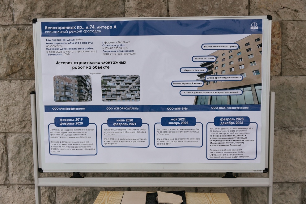 Председатель Жилищного комитета Санкт‑Петербурга Денис Удод провёл инспекционный объезд и проверил ход завершающих работ по капитальному ремонту фасада жилого дома на проспекте Непокоренных, 74, литера А. Здание, построенное в 1976 году для работников Октябрьской железной дороги, является ярким образцом архитектуры советского модернизма и обладает сложной градоформирующей конфигурацией.