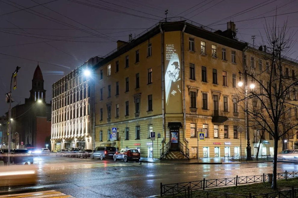 Даниил Иванович Хармс родился 30 декабря в Петербурге и был одной из самых узнаваемых фигур литературного авангарда Ленинграда, чей необычный стиль сделал поэта символом своего времени. Обновлённая проекция к 120‑летию писателя стала данью уважения его уникальному наследию. Несколько лет назад здесь разместили первую инсталляцию с изображением поэта. Теперь портрет Хармса получил новую редакцию, ещё ярче раскрывающую образ писателя.