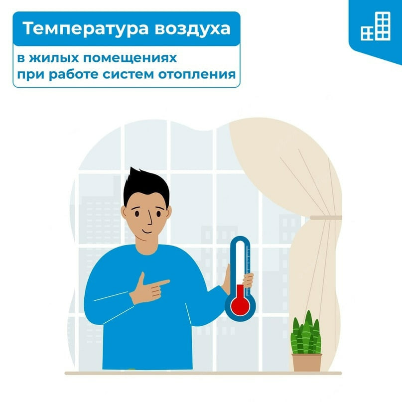 В соответствии с этими правилами температура в жилых помещениях должна быть не ниже +18°С (в угловых комнатах - +20°С). В ночное время допускается снижение температуры не более, чем на 3°С. Превышение нормативной температуры допускается не более чем на 4°С.