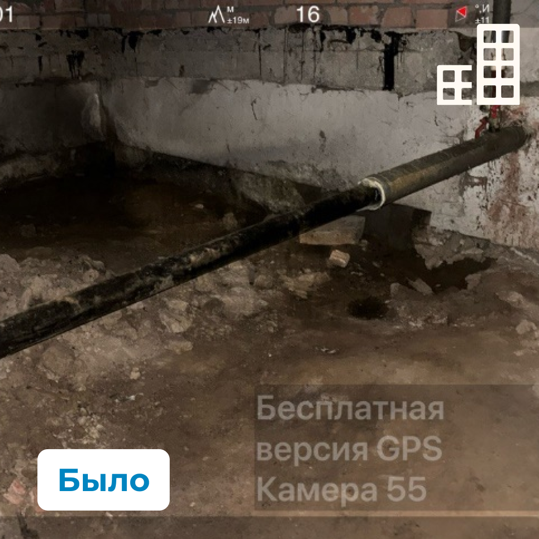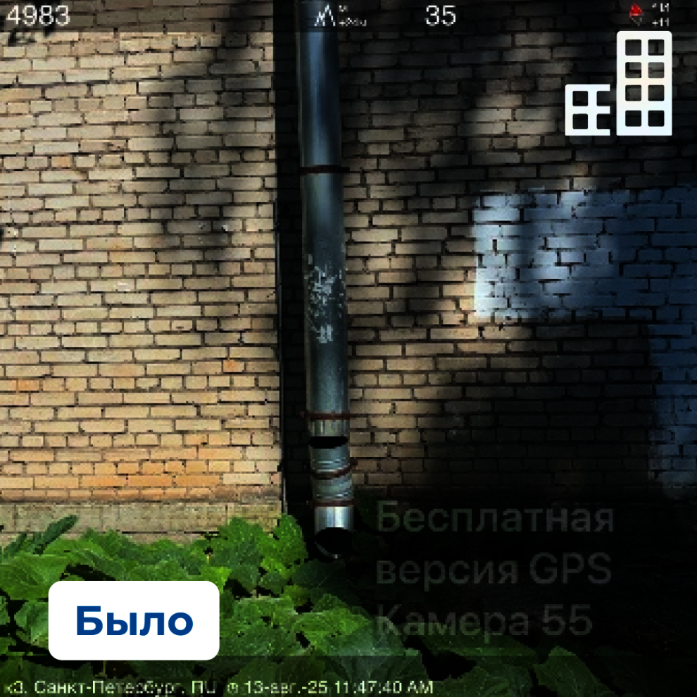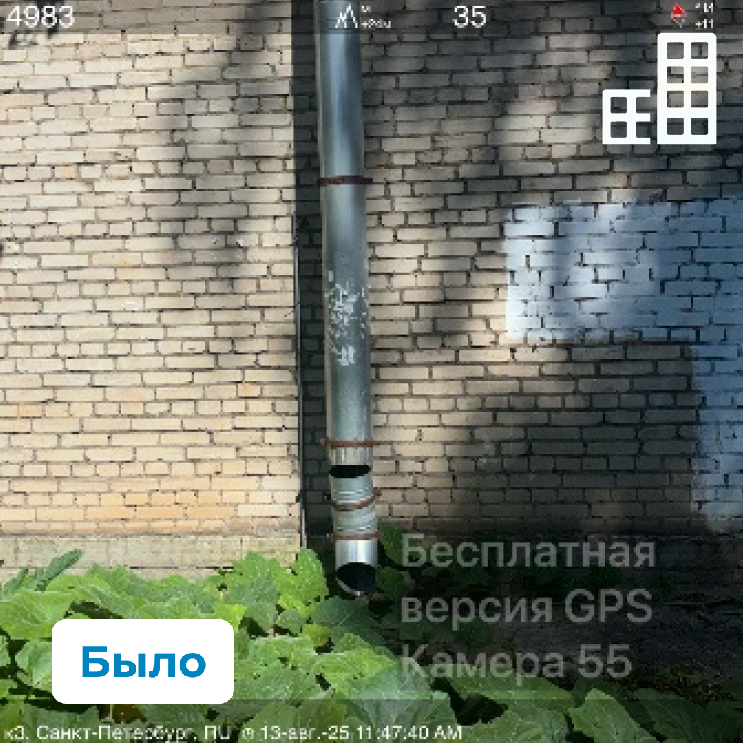 В ходе осмотра выявлены нарушения в части целостности изоляции трубопроводов и содержания системы водоотведения. Зафиксированы неисправности ливневой канализации, расхождение звеньев, а также отсутствие отдельных элементов водосточных труб.