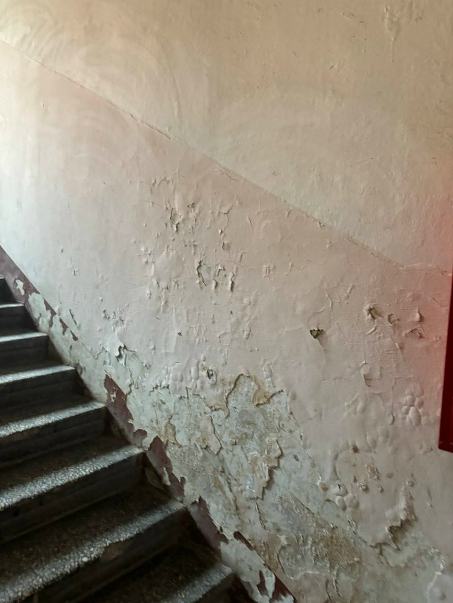 В ходе проверки специалисты Инспекции зафиксировали многочисленные нарушения требований к содержанию общего имущества: разрушения облицовки, штукатурки, фактурного и окрасочного слоев на стенах и потолке, трещины и выбоины на ступенях крыльца одного из подъездов.