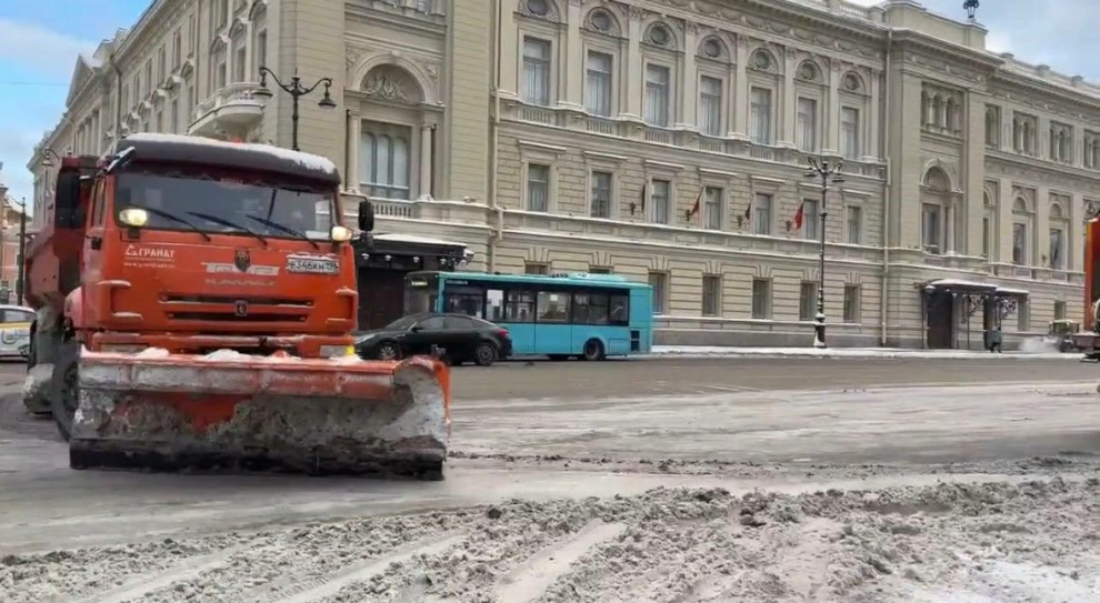 Улицы и тротуары Петербурга убирают 934 единицы техники и более тысячи работников ручного труда.