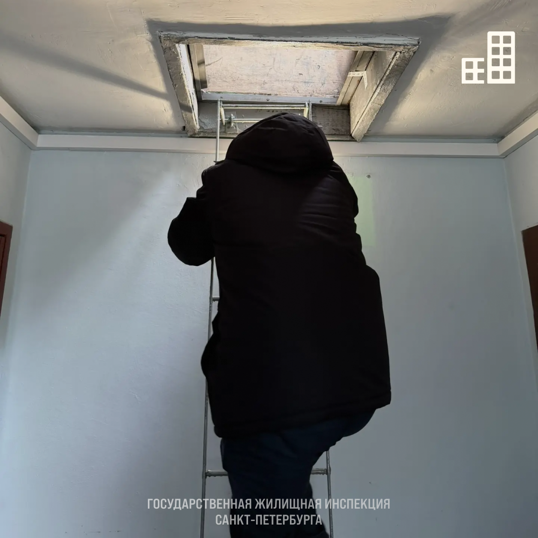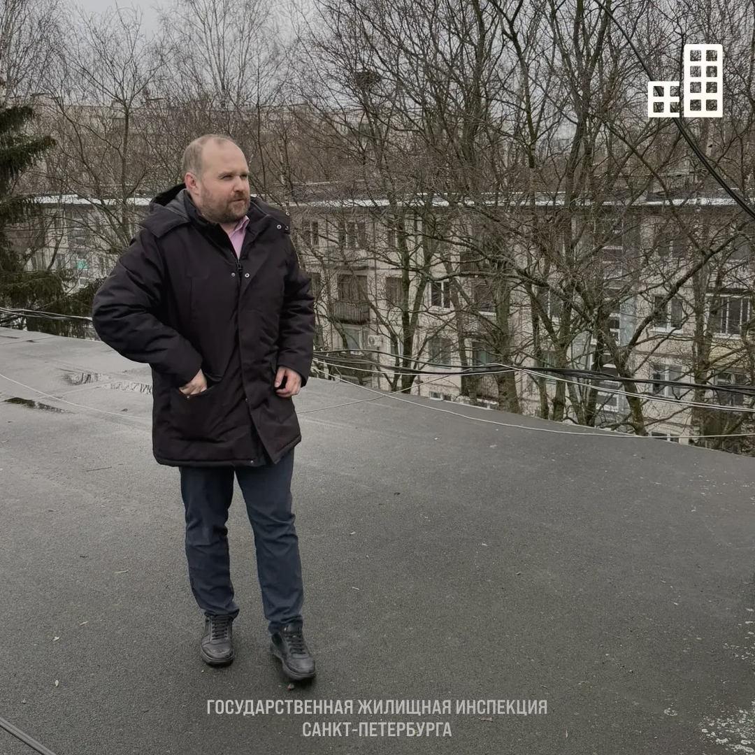 Прибыв на место, специалисты Инспекции столкнулись с проблемой доступа в квартиру, так как женщина, по информации соседей, плохо слышит. Ранее представители ЖКС 3 уже провели обследование квартиры, где была обнаружена протечка в углу кухни площадью около 0,5 кв.м. Также была зафиксирована протечка на лестничной клетке. Для выяснения причин протечки, жилищные инспекторы поднялись на крышу жилого здания. Кровля здания имеет мягкое покрытие. После очистки от снега была выполнена герметизация в районе установки стойки антенны.