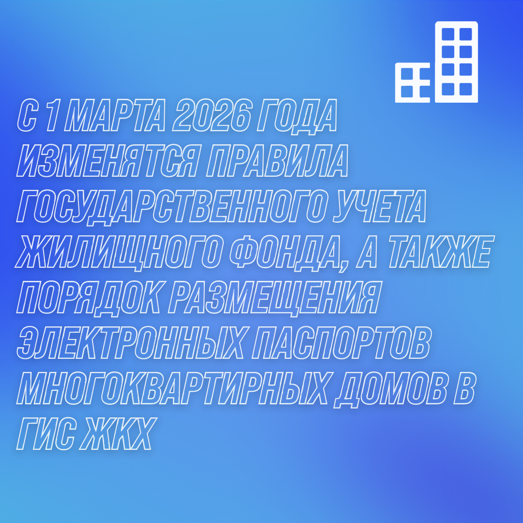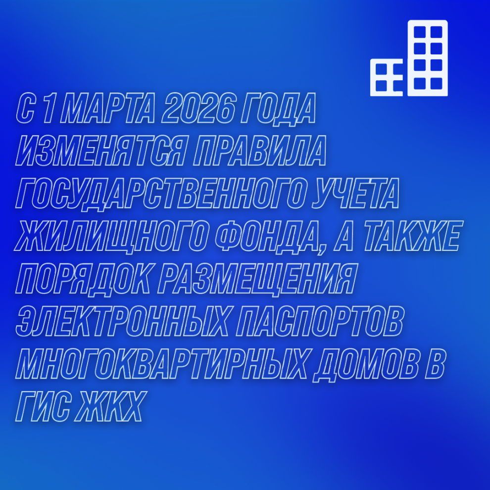 С 1 марта 2026 года изменятся правила государственного учета жилищного фонда, а также порядок размещения электронных паспортов многоквартирных домов в ГИС ЖКХ.