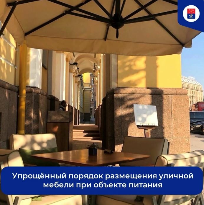 Начиная с 2023 года Правительством Санкт‑Петербурга введен упрощенный порядок размещения уличной мебели (при объекте общественного питания), который позволяет получить разрешение сразу на три летних сезона подряд.