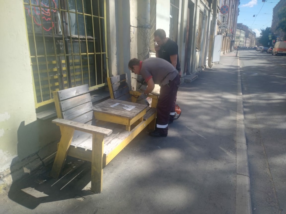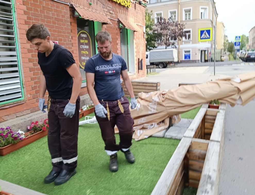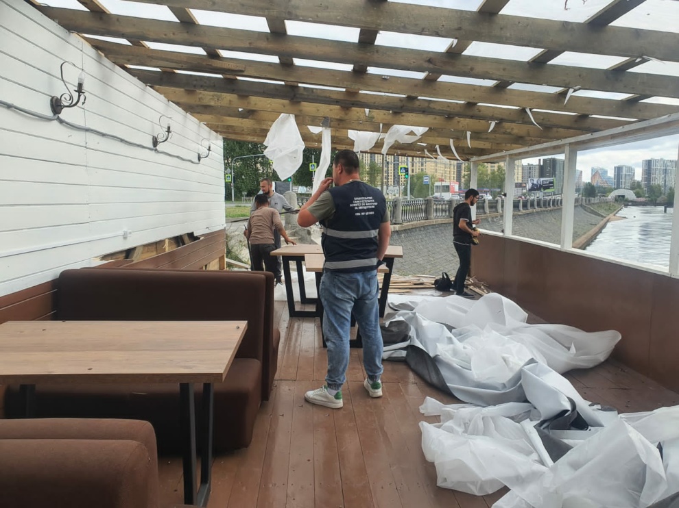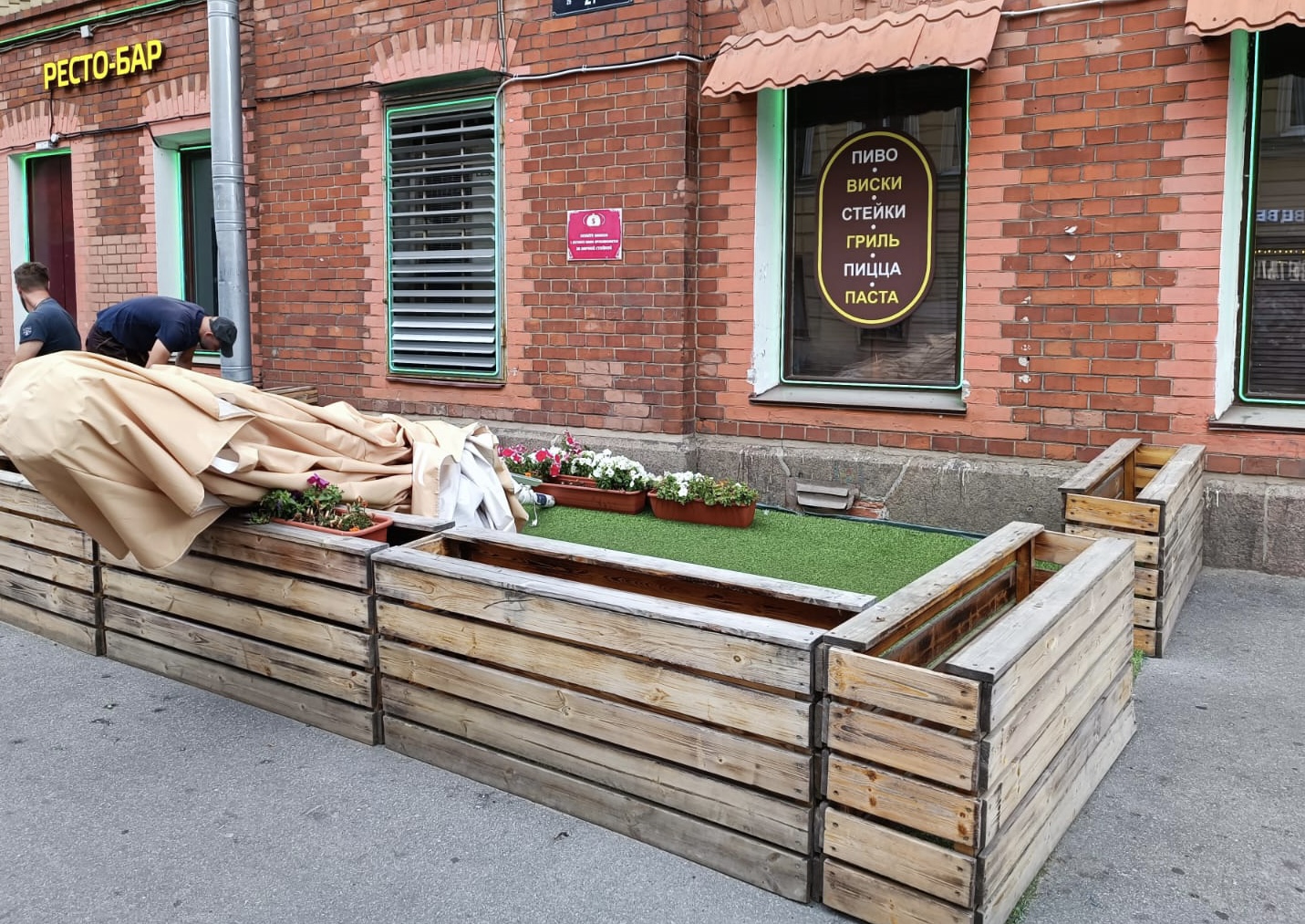 В ходе проведенных мероприятий незаконные летние террасы ресторанов демонтированы в переулке Крылова, на 8-й Советской улице и Октябрьской набережной. Самовольно размещенная выносная мебель (столы, стулья, зонты и другие элементы благоустройства, предназначенные для оборудования летних кафе) изъята на 8-й Советской и Канонерской улицах, на Выборгском шоссе и улице Котовского. Настил летнего кафе демонтирован на проспекте Патриотов.