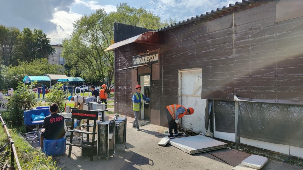 На Енотаевской улице продолжается демонтаж многосекционного торгового павильона площадью 148 кв. м. Ранее в отношении участка между юридическим лицом и городом был заключен договор аренды. При возведении объекта землепользователь превысил площадь территории, предоставленной в пользование. В дальнейшем договор аренды был расторгнут. Обязательство освободить участок по окончании действия договора бывший арендатор не исполнил.