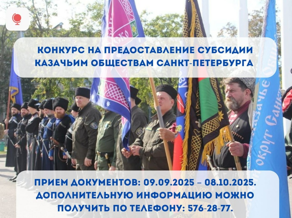 Объявляется конкурсный отбор на предоставление субсидий казачьим обществам Санкт‑Петербурга