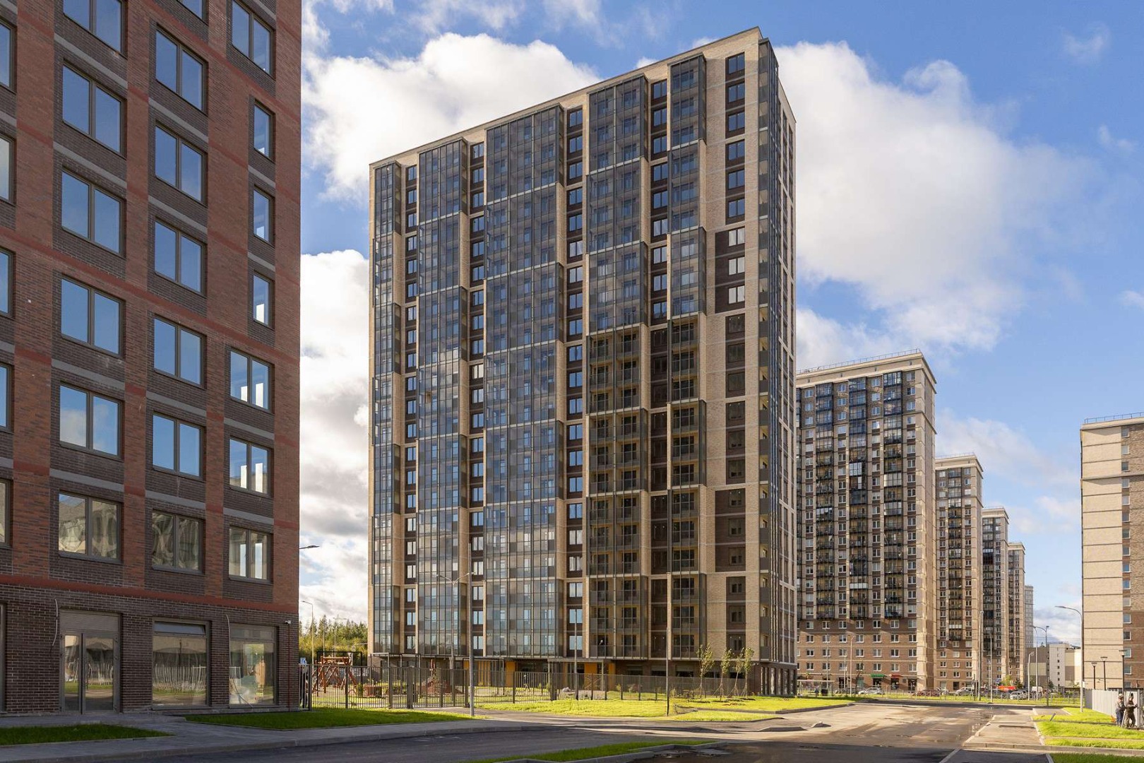 Передача квартир началась на следующий день после получения разрешительной документации. За первые три дня передачи ключей было заселено более 100 квартир. Параллельно с жилой застройкой развивается социальная инфраструктура района.