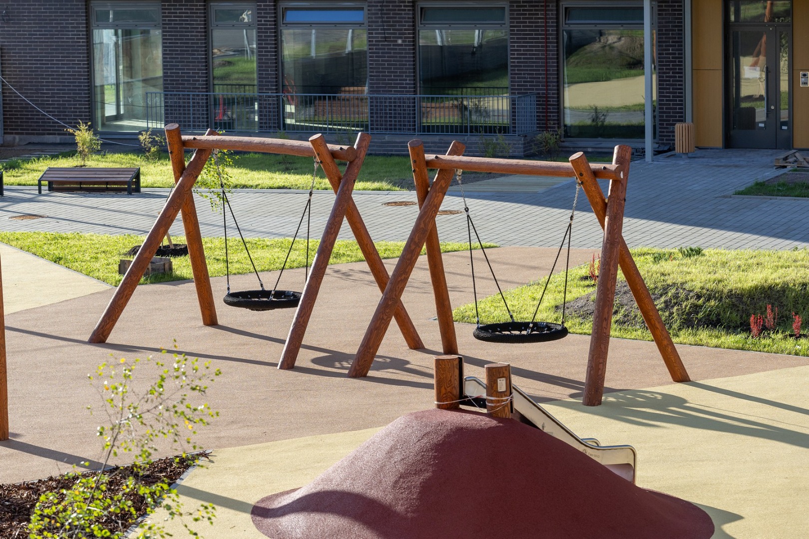 Корпуса 3 и 4 формируют общий закрытый двор. Во дворе размещены детские и спортивные площадки, зоны отдыха, фонтан, внедрена система «умный квартал» с видеонаблюдением. Доступ на территорию ограничен для посторонних благодаря IP-домофонии.