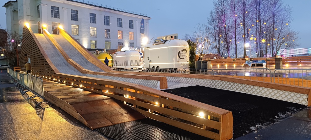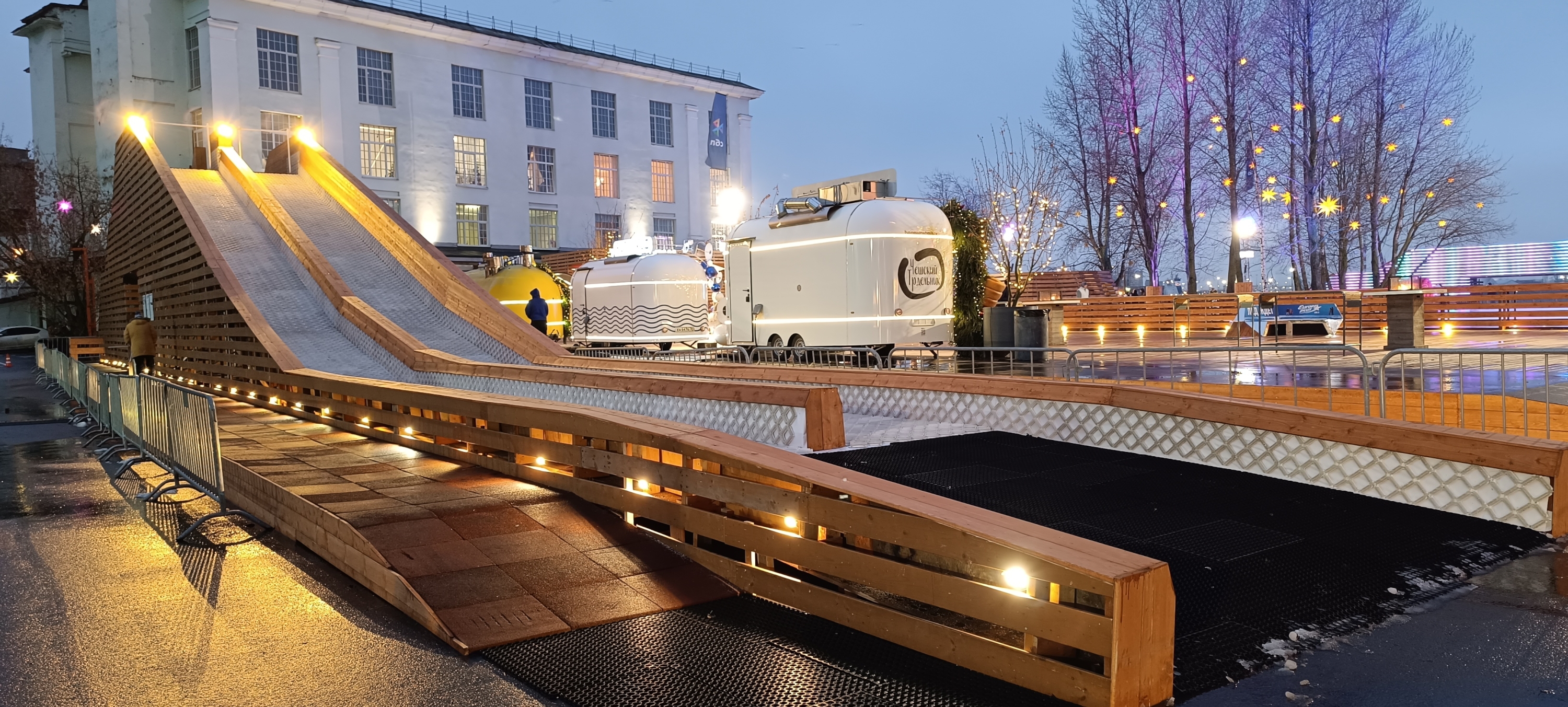 На территории общественного культурно-делового пространства «Севкабель Порт», как и в прошлом году, рядом с катком, уже работает аттракцион «Горка у моря» с живописным видом на Финский залив и идеальным покрытием для долгих скольжений. Высота горки — 7 метров, длина — 42, кататься можно сразу на двух дорожках. На горку допускаются дети от 6 лет и ростом не ниже 120 см. До 14 лет только в сопровождении взрослого.