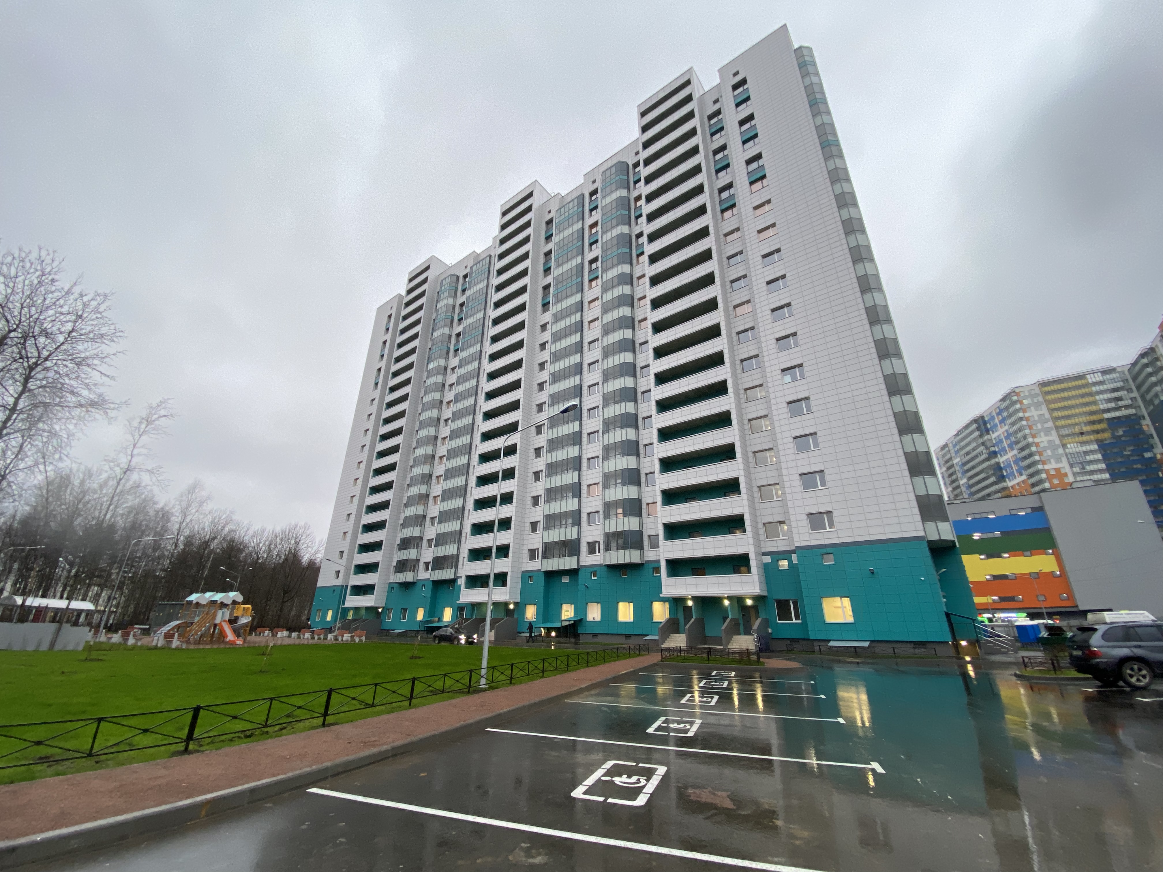 Возведение 20-этажного жилого дома на Нижне-Каменской улице в Приморском районе началось в начале прошлого года. Проектная документация предусматривает выполнение мероприятий для доступа людей с ограниченными возможностями. Для них здесь оборудованы квартиры с учетом потребности граждан передвигаться на инвалидных колясках. Кроме этого, в здании смонтированы специальные подъёмники при входе в пристроенные к дому помещения, где разместятся культурный центр и отделение почты. На автостоянке оборудованы места для парковки машин инвалидов.