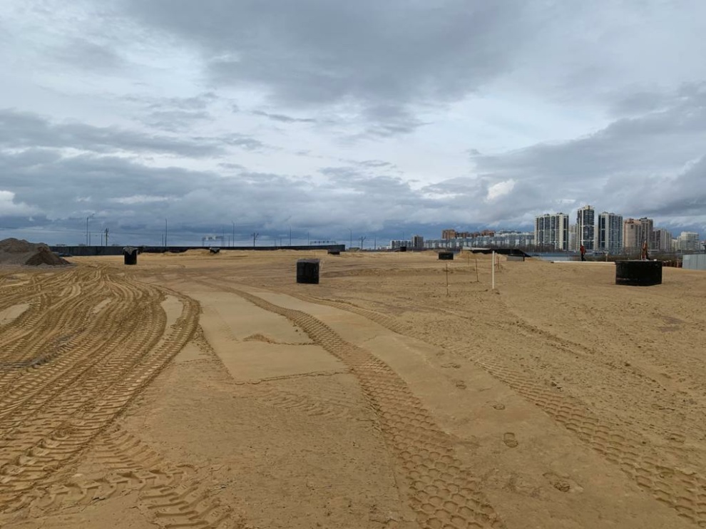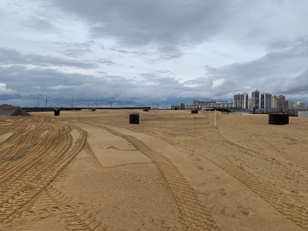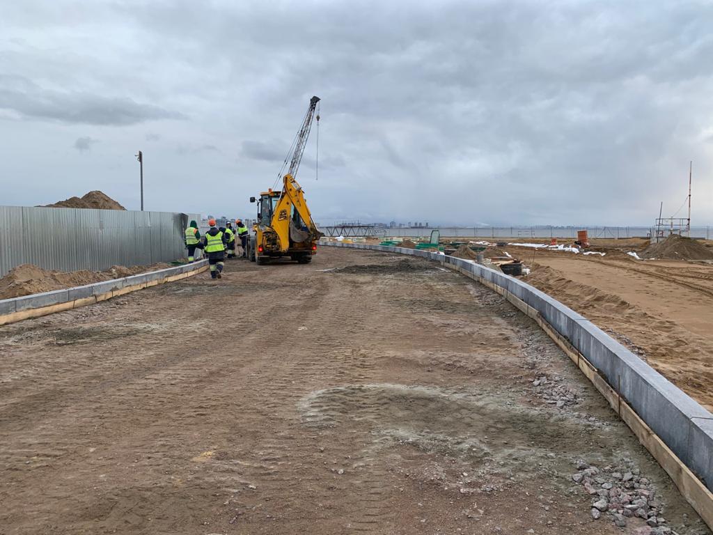 По состоянию на середину апреля генеральной подрядной организацией ЗАО «АБЗ-Дорстрой» завершены работы по возведению насыпи земляного полотна на участке усиления слабого основания площадью 12 тыс. кв. метров. Данный участок расположен на подходе к будущему мосту через Лахтинскую гавань, который свяжет комплекс с Приморским шоссе и улицей Савушкина.
